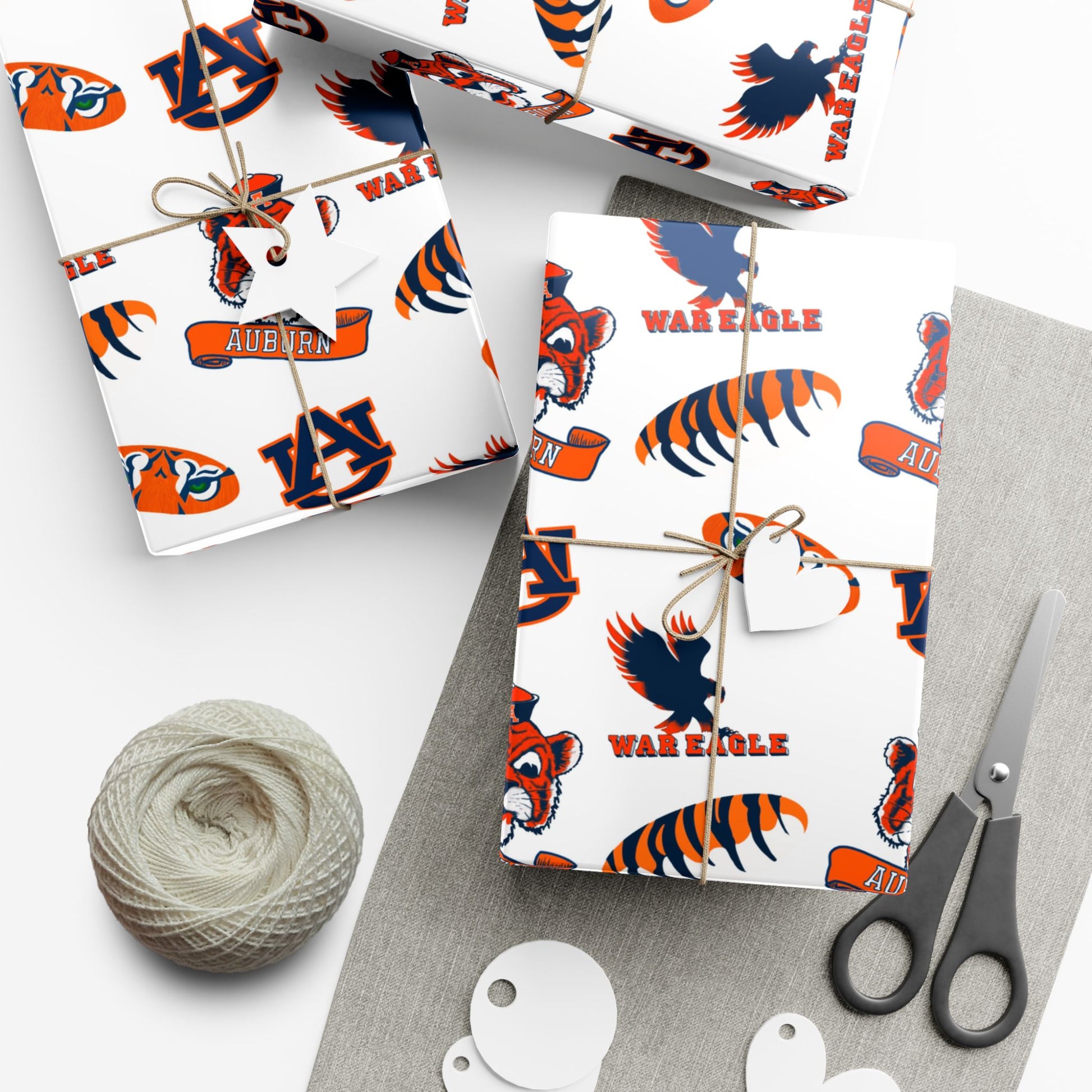 Auburn Tigers Patterned Gift Wrap Paper – Collegiate Football Wrapping Sheets (Includes AU Logos, War Eagle & Tiger Motifs)