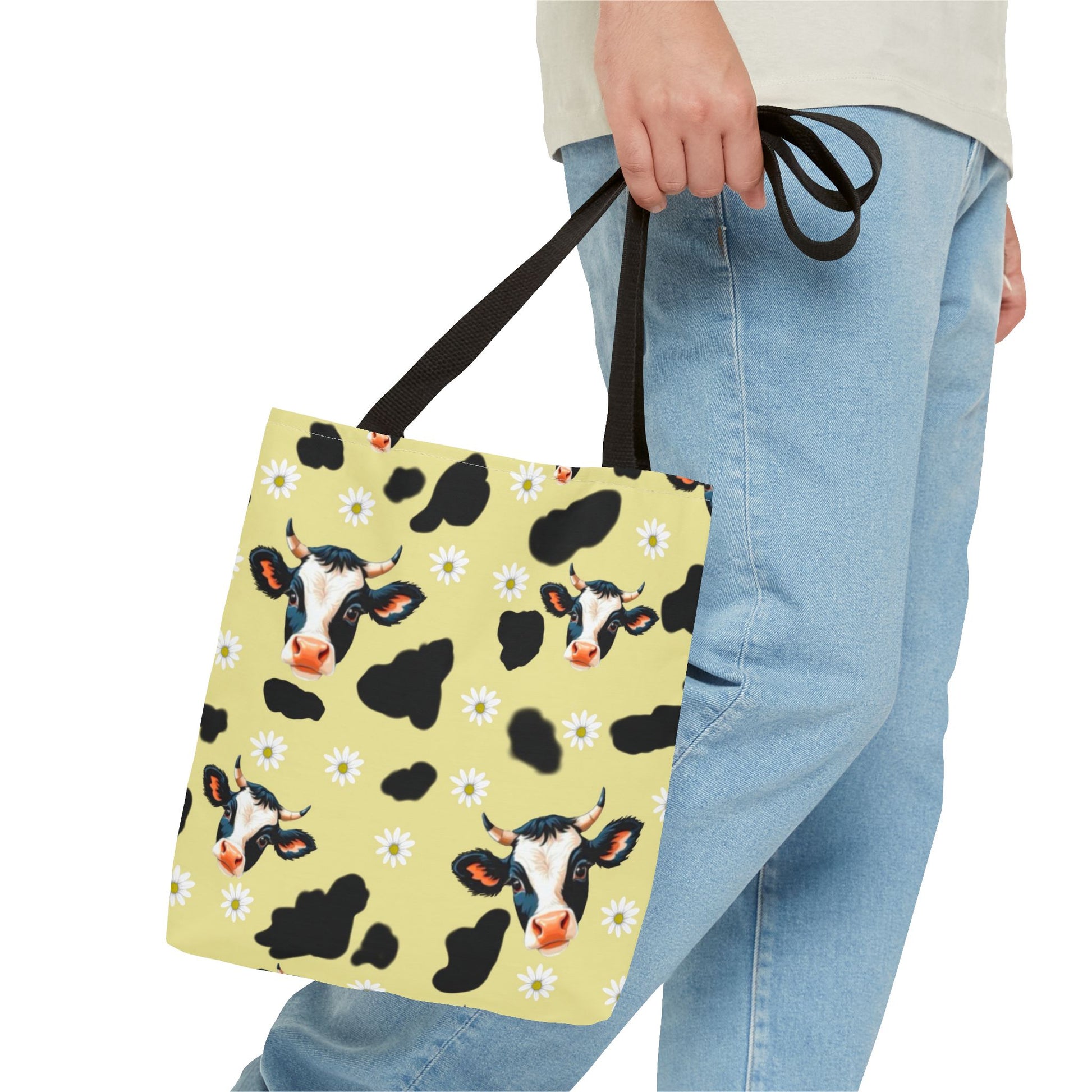 Brighten up your everyday outings with this charming tote bag! Featuring an adorable cow print set against a cheerful yellow background, this tote brings a touch of fun to your errands, picnics, or beach days. Perfect for animal lovers and those who appreciate unique style, this bag is a great accessory for various occasions. Celebrate friendship, family gatherings, or even farm-themed events with this eye-catching design. Ideal for holidays like Easter or summer outings, it adds a whimsical flair to your ensemble.
