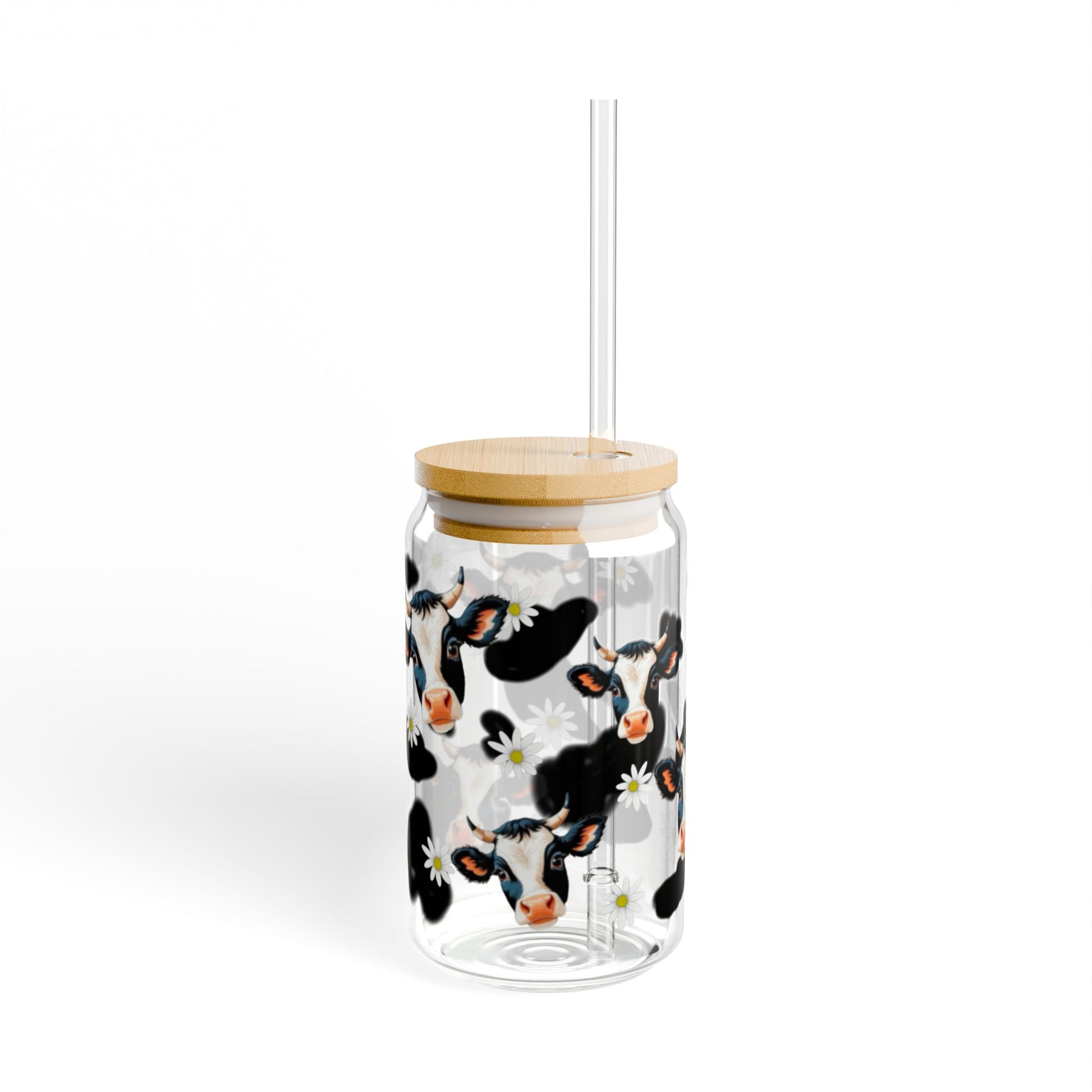 Cute Cow Print Sipper Glass, 16oz | Perfect for Farm-themed Events, Eco-friendly Gift, Home Decor, Summer Parties, Kids' Birthdays