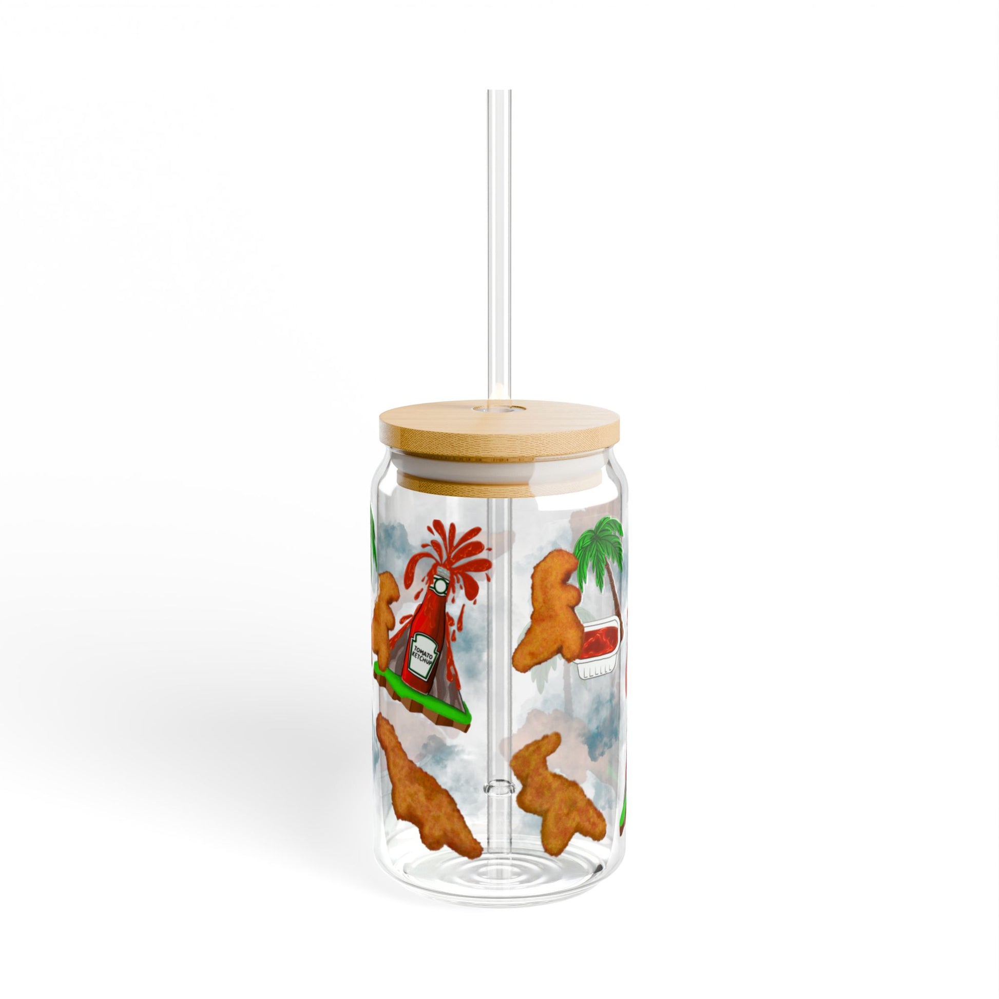 Dino Nuggets Sipper Glass, 16oz | Fun Summer Drinkware, Hawaiian Vibes, Beach Party Decor, Eco-Friendly Glass, Gift for Nature Lovers