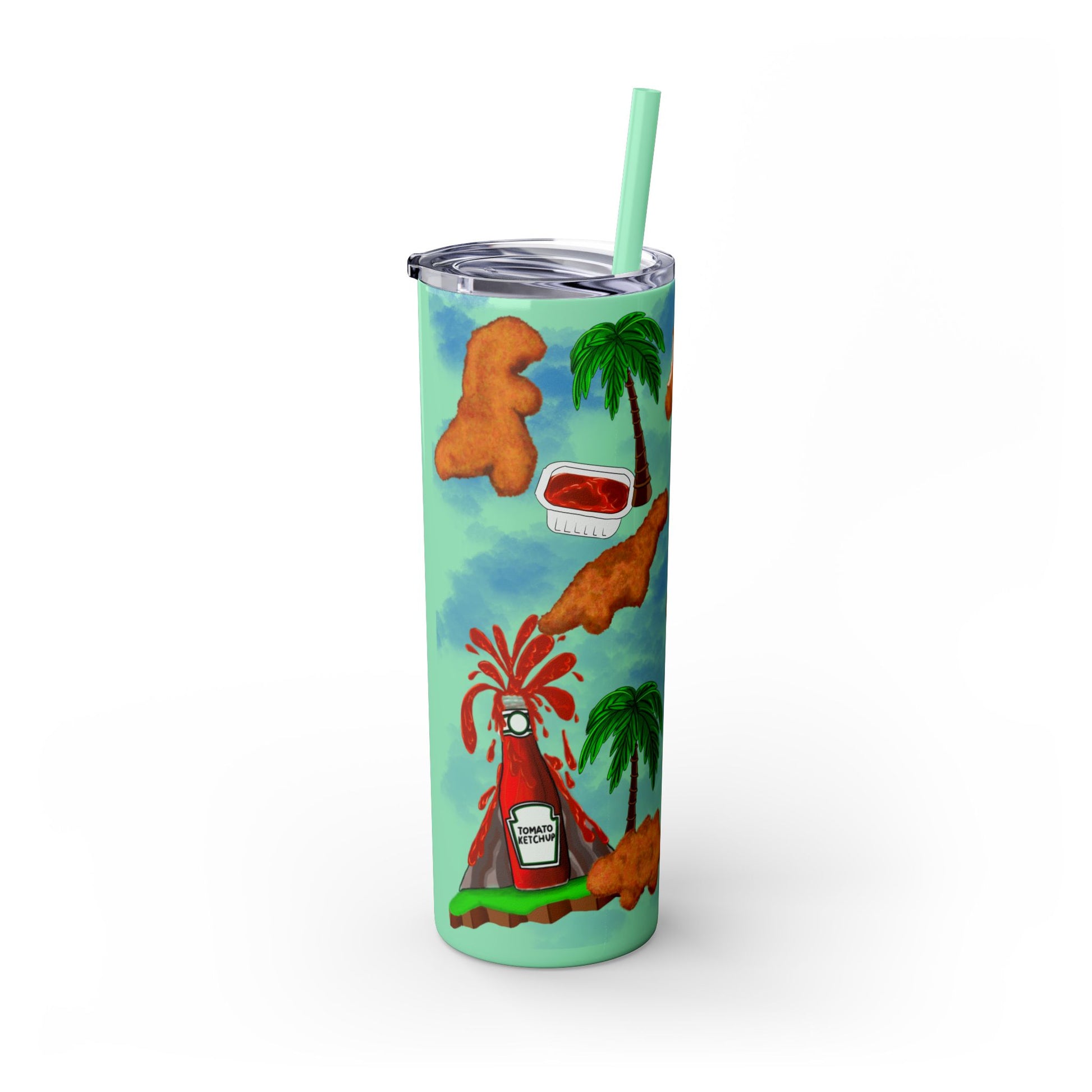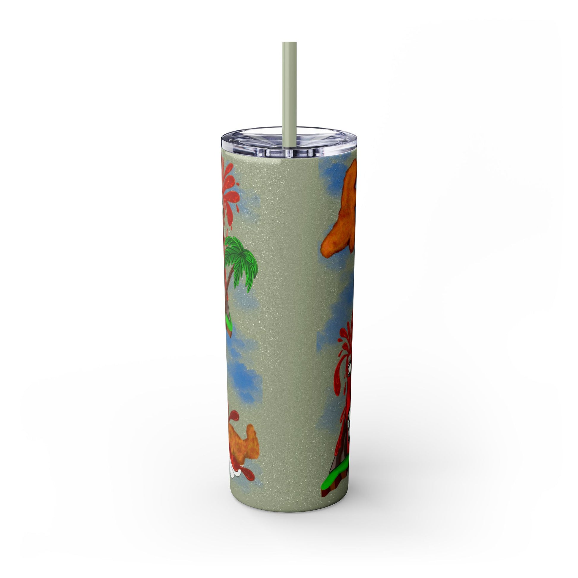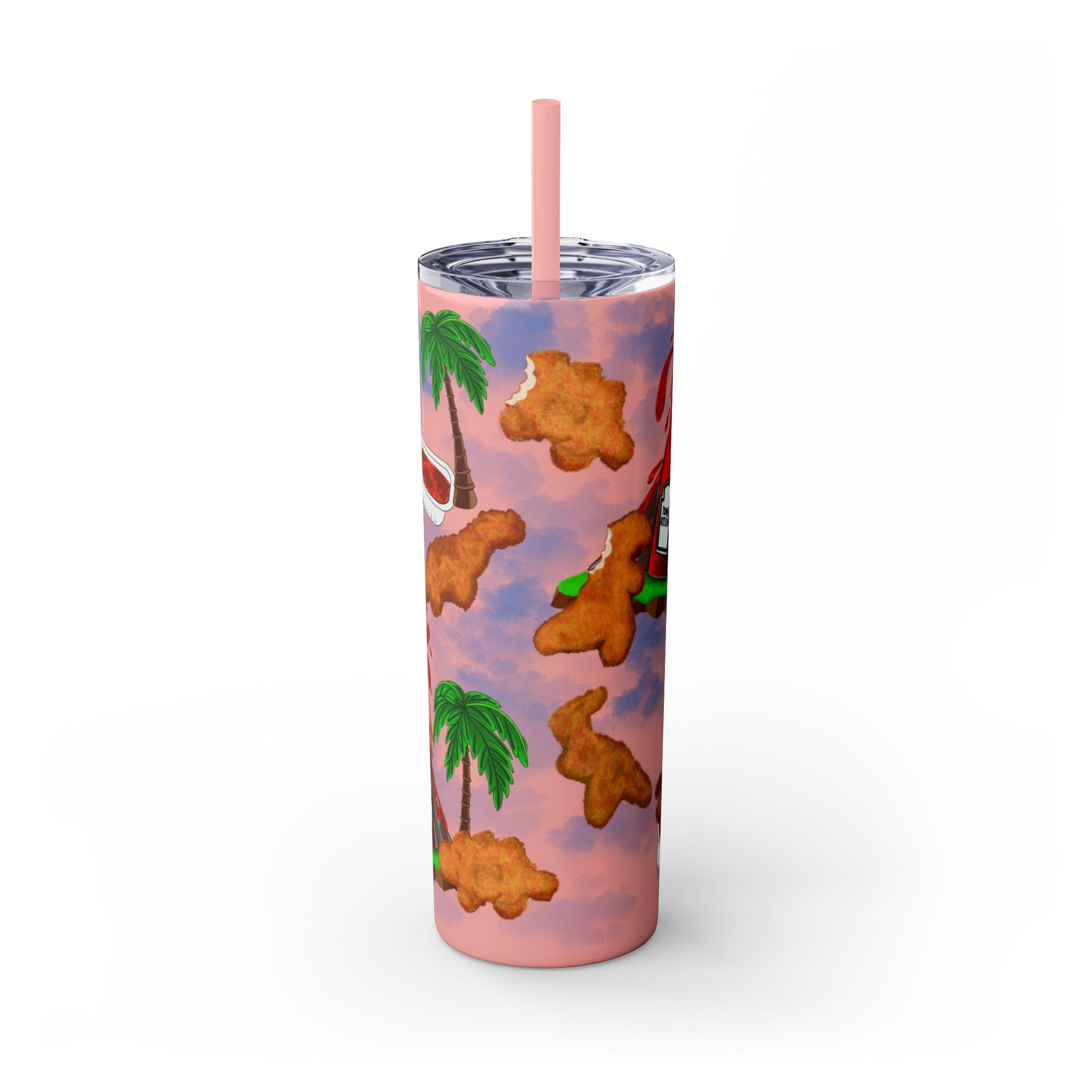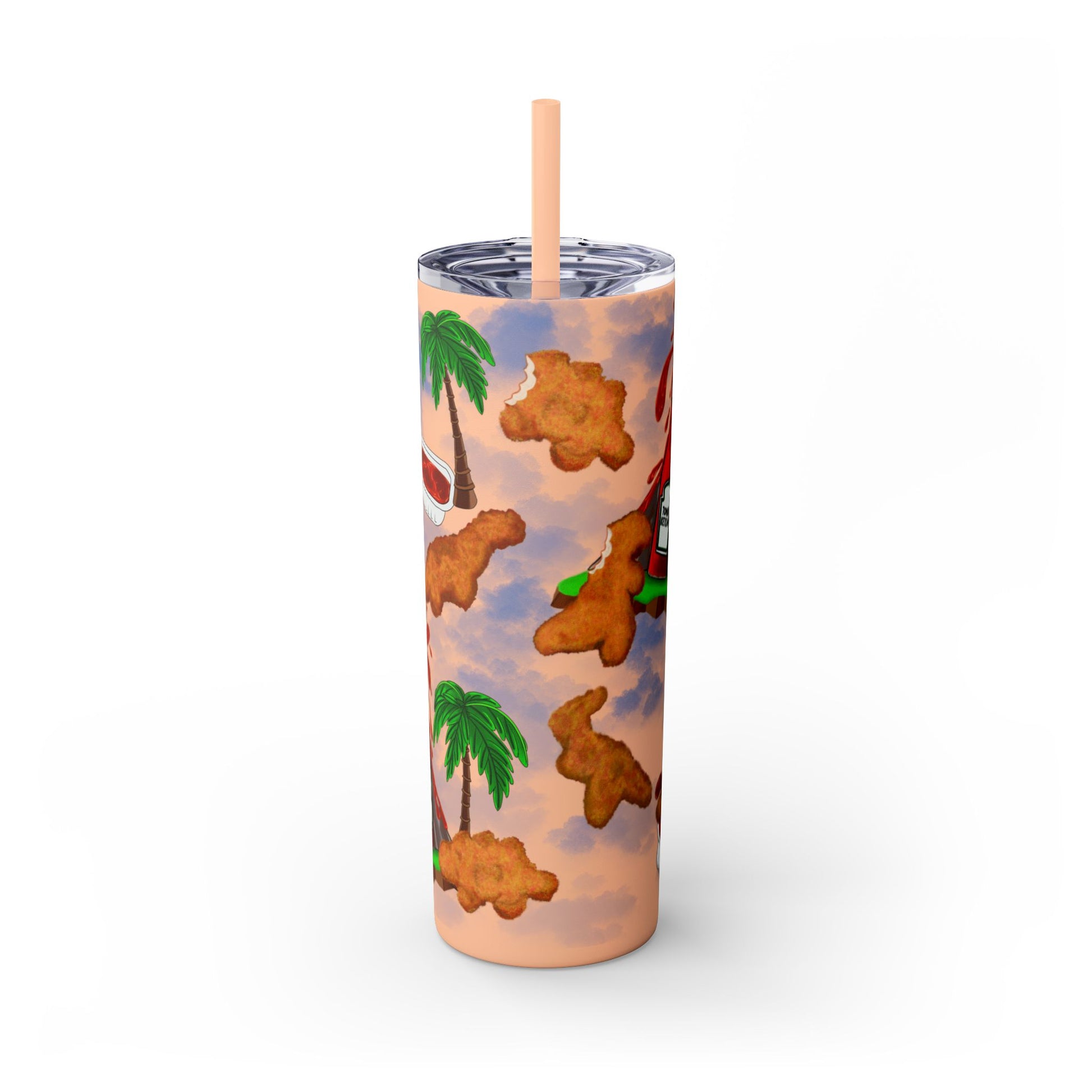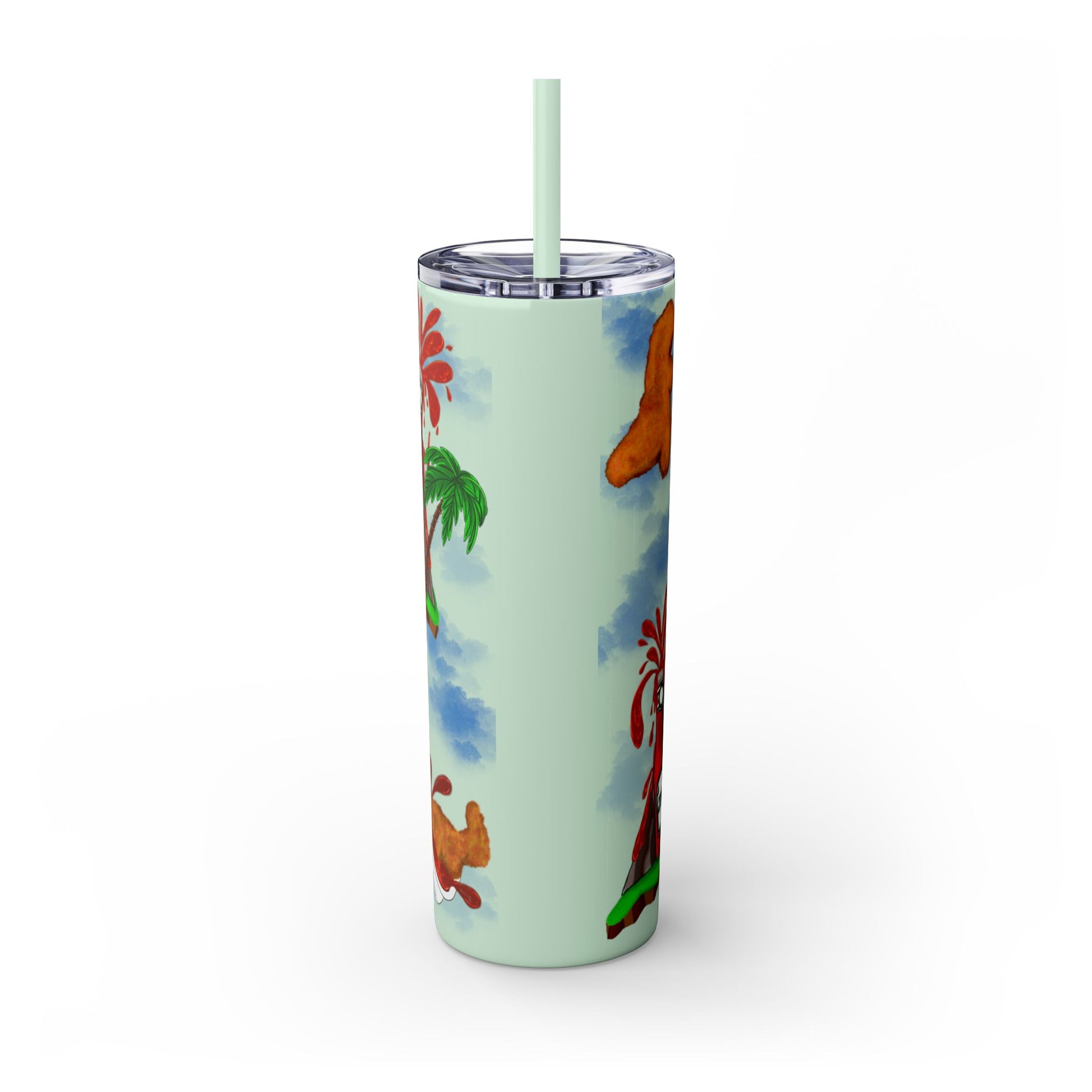 Dino Nuggets Tropical Themed Skinny Tumbler with Straw, 20oz | Fun Vacation Drinkware, Summer, Hawaiian Party, Gift for Beach Lovers