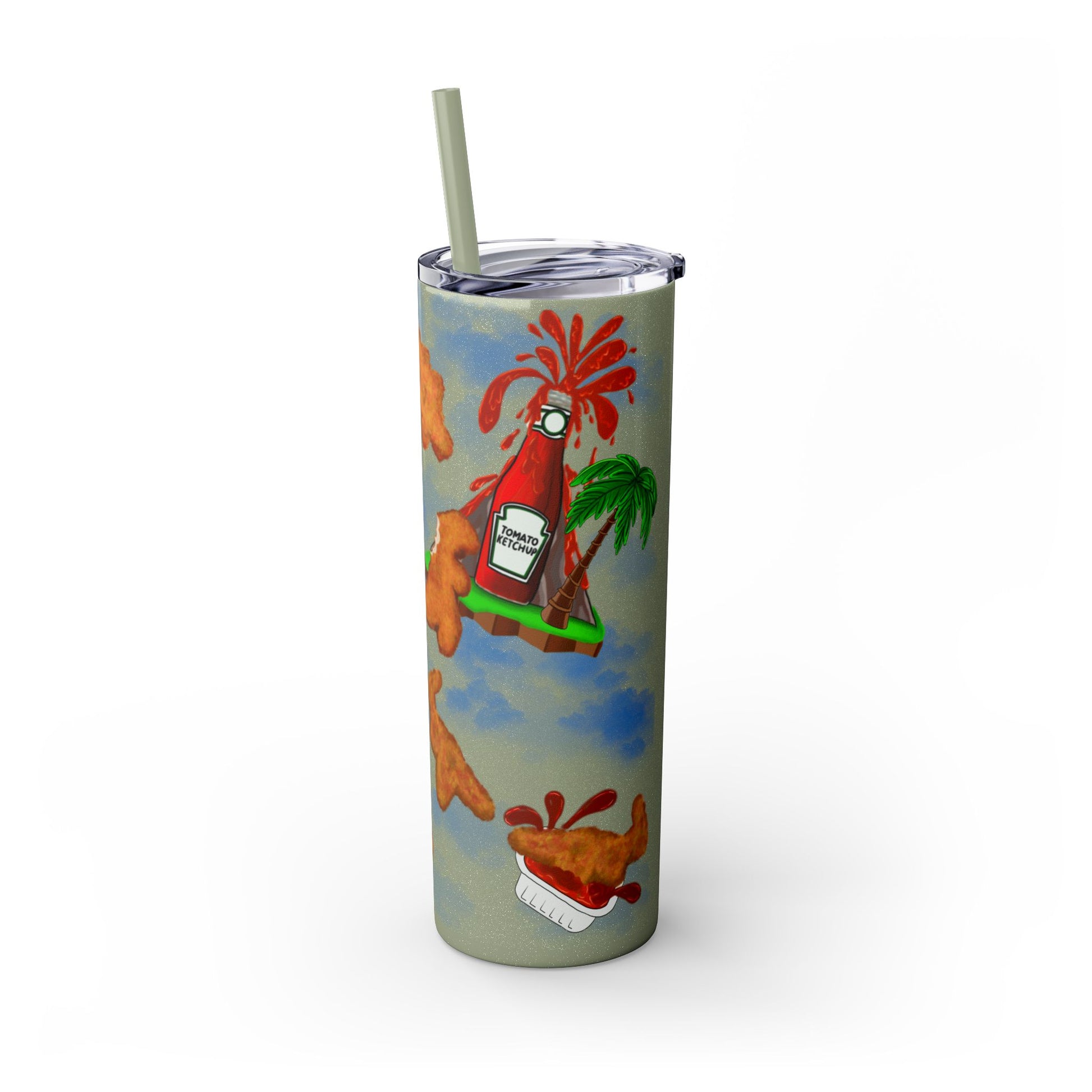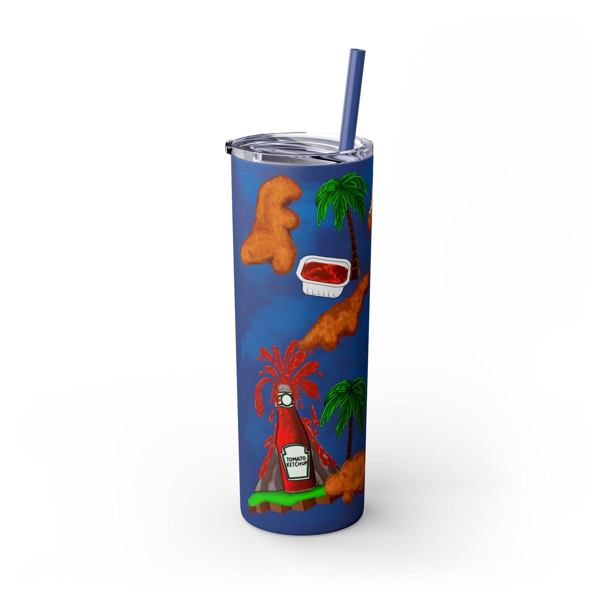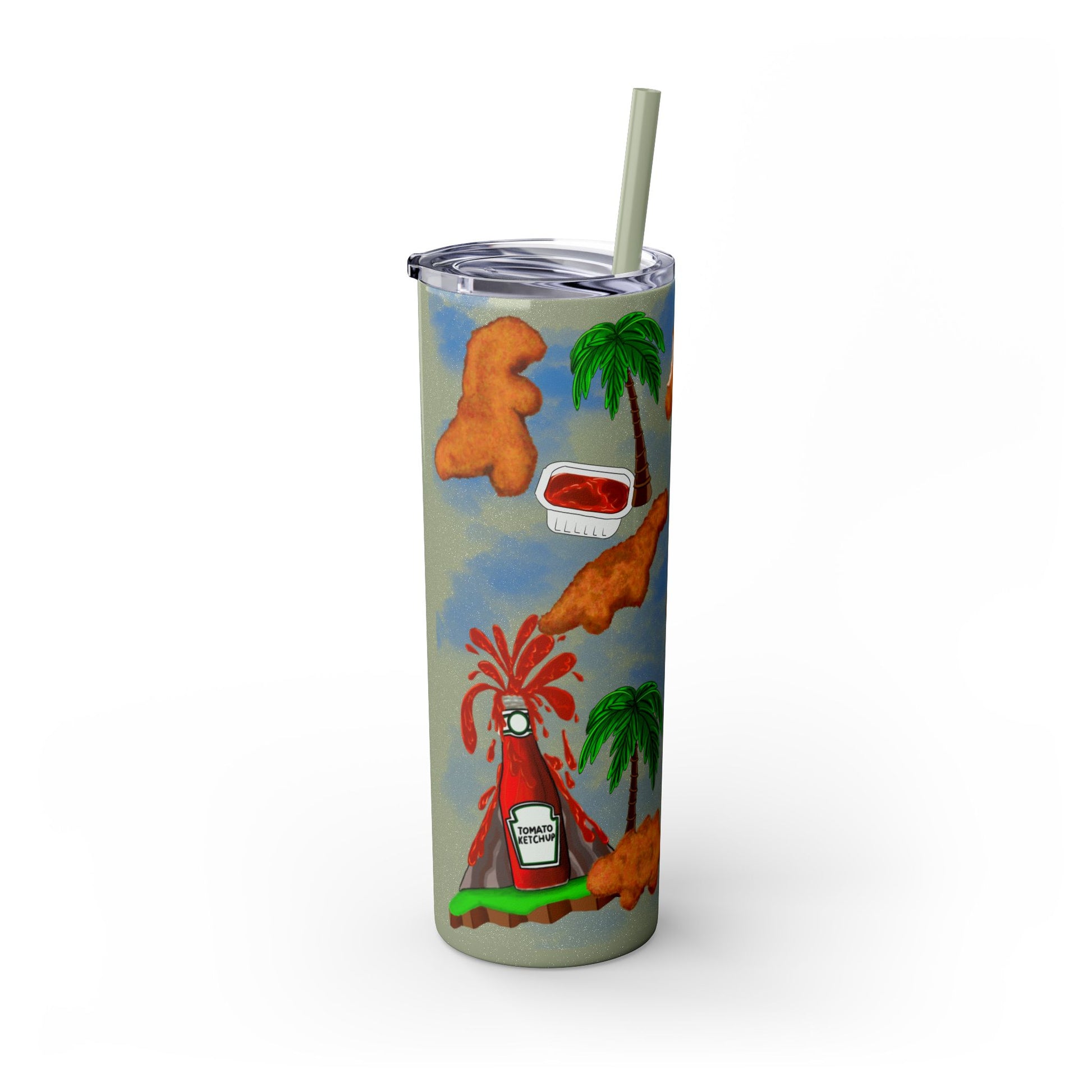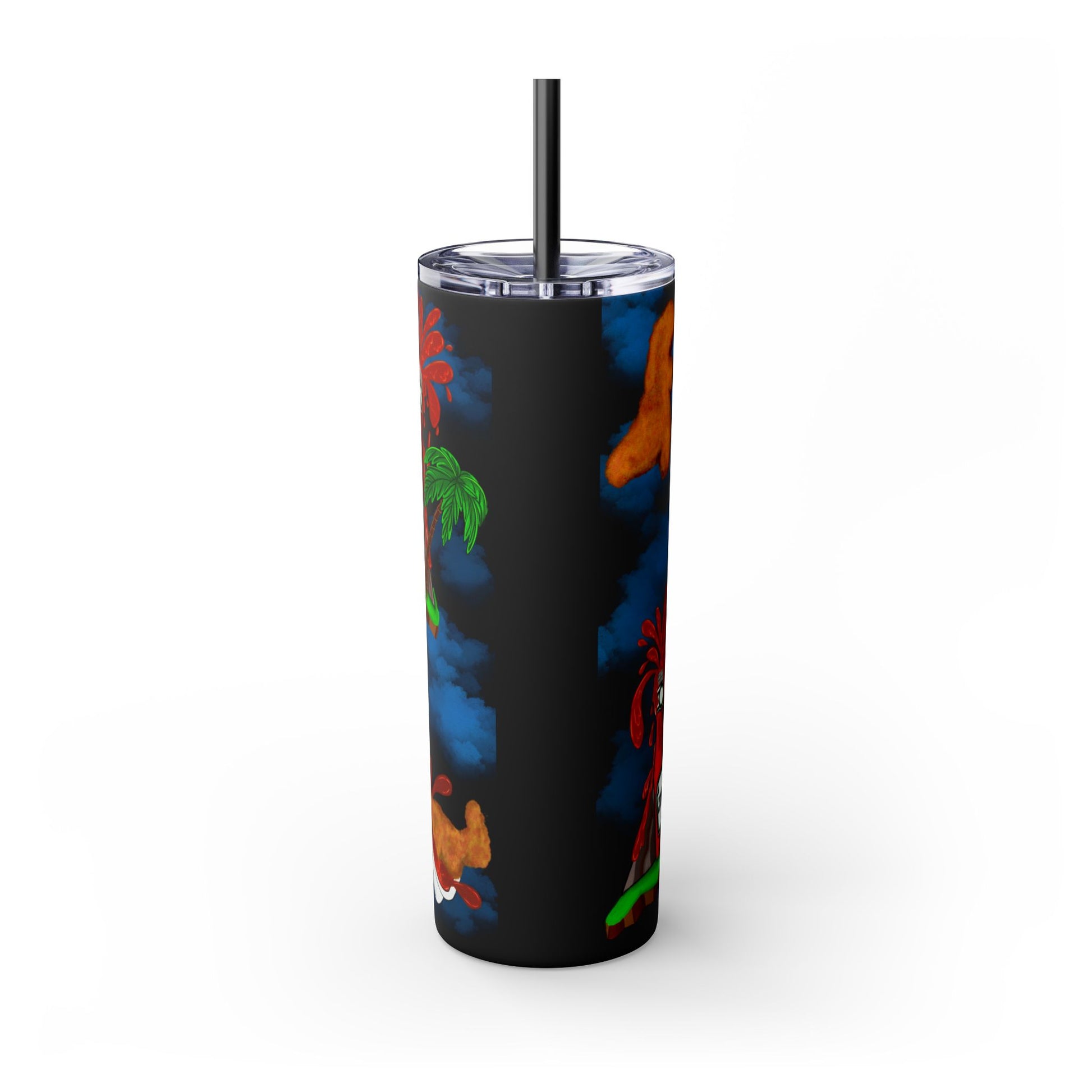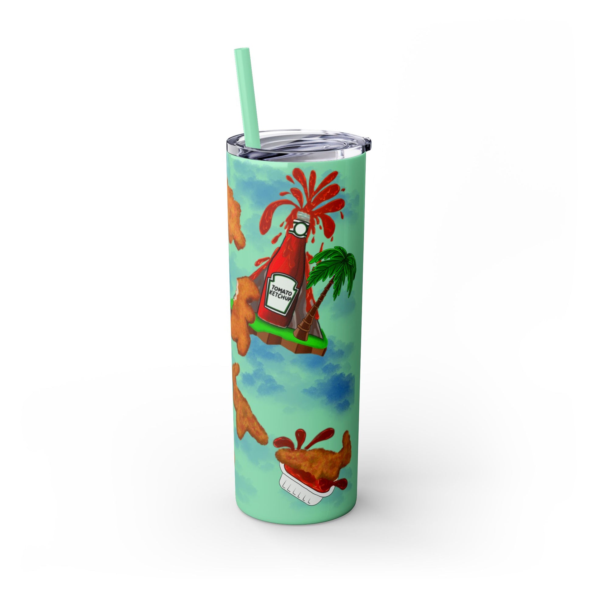 Dino Nuggets Tropical Themed Skinny Tumbler with Straw, 20oz | Fun Vacation Drinkware, Summer, Hawaiian Party, Gift for Beach Lovers