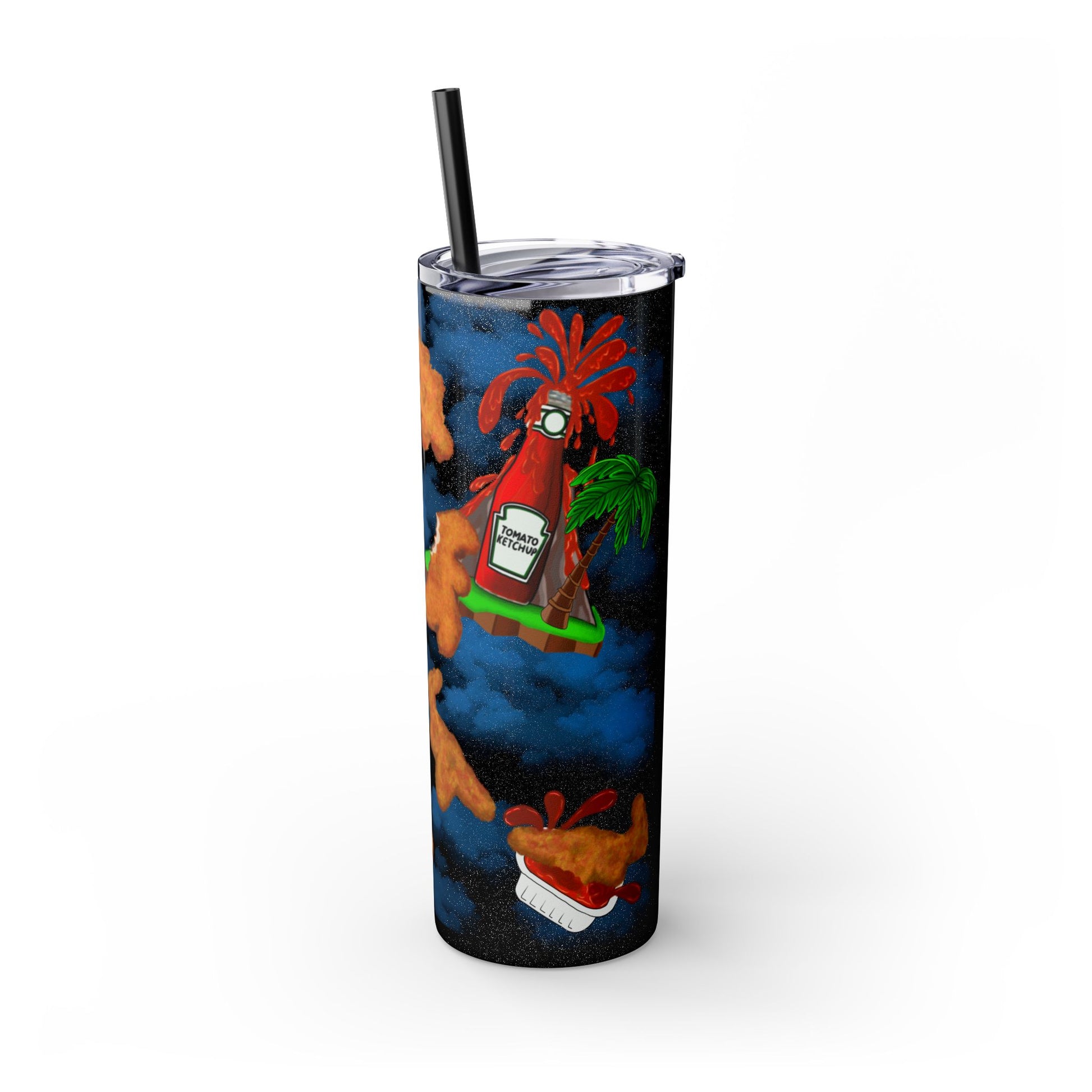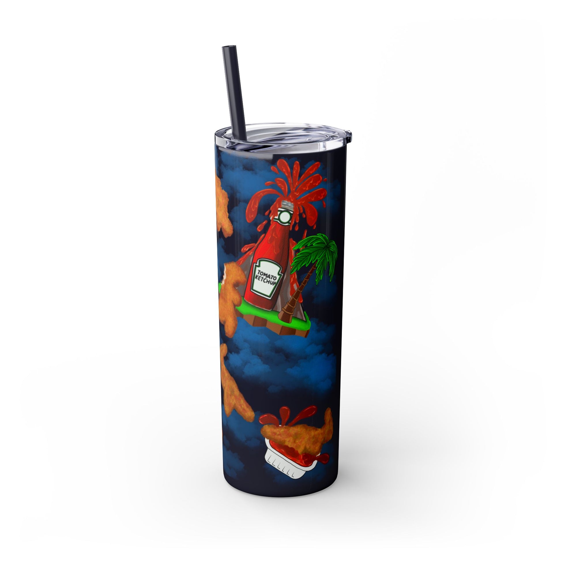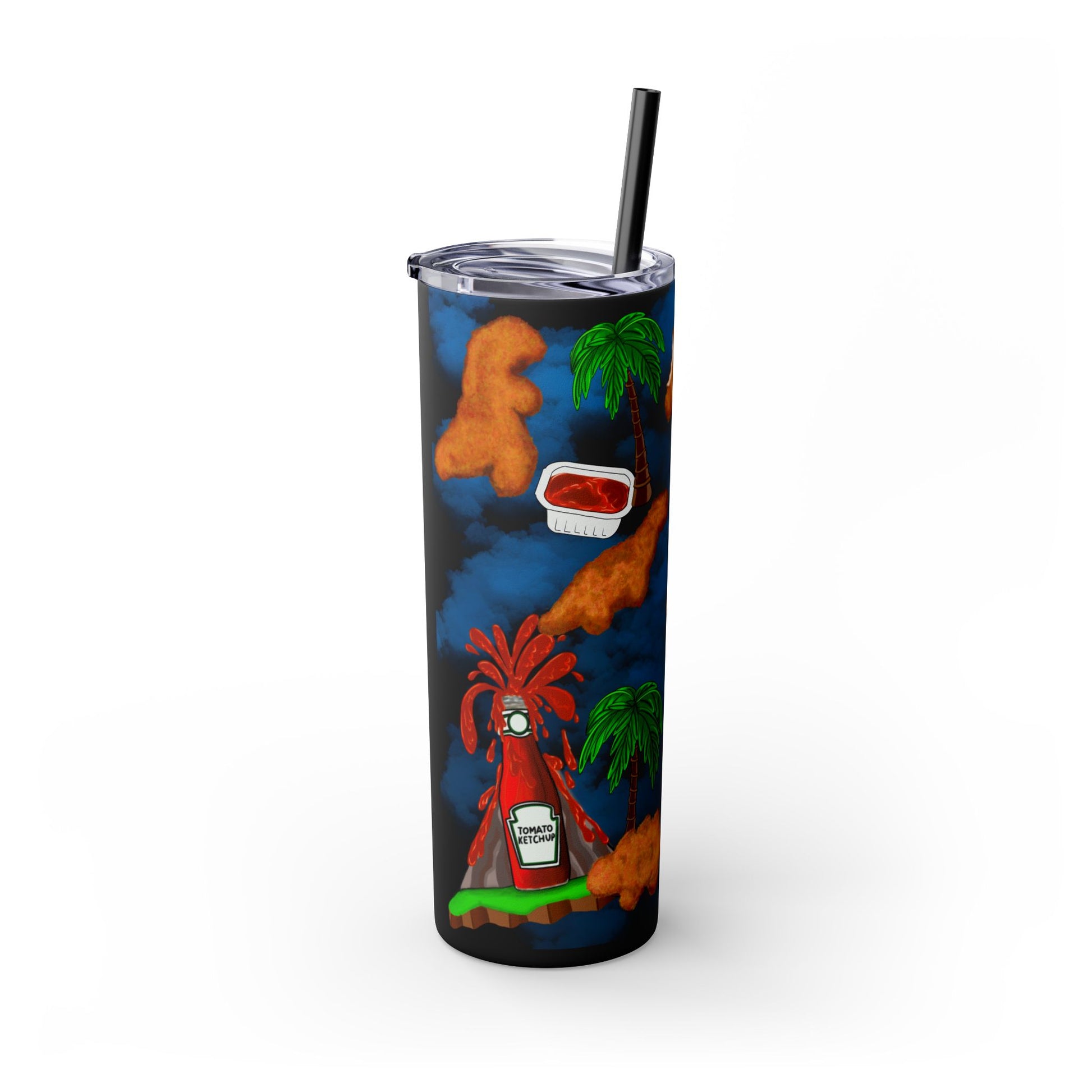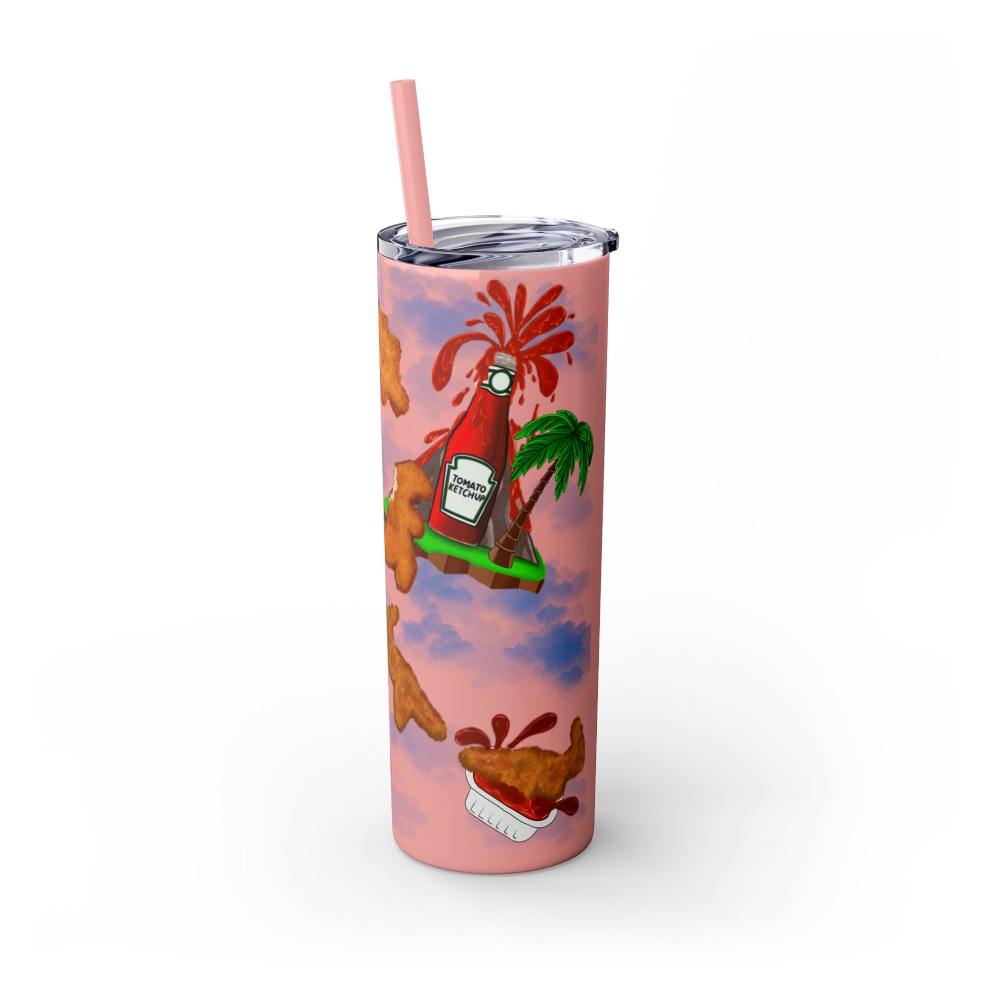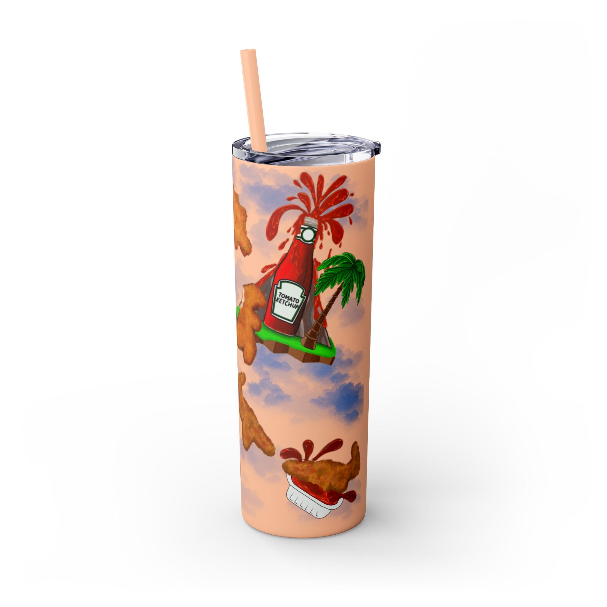 Dino Nuggets Tropical Themed Skinny Tumbler with Straw, 20oz | Fun Vacation Drinkware, Summer, Hawaiian Party, Gift for Beach Lovers