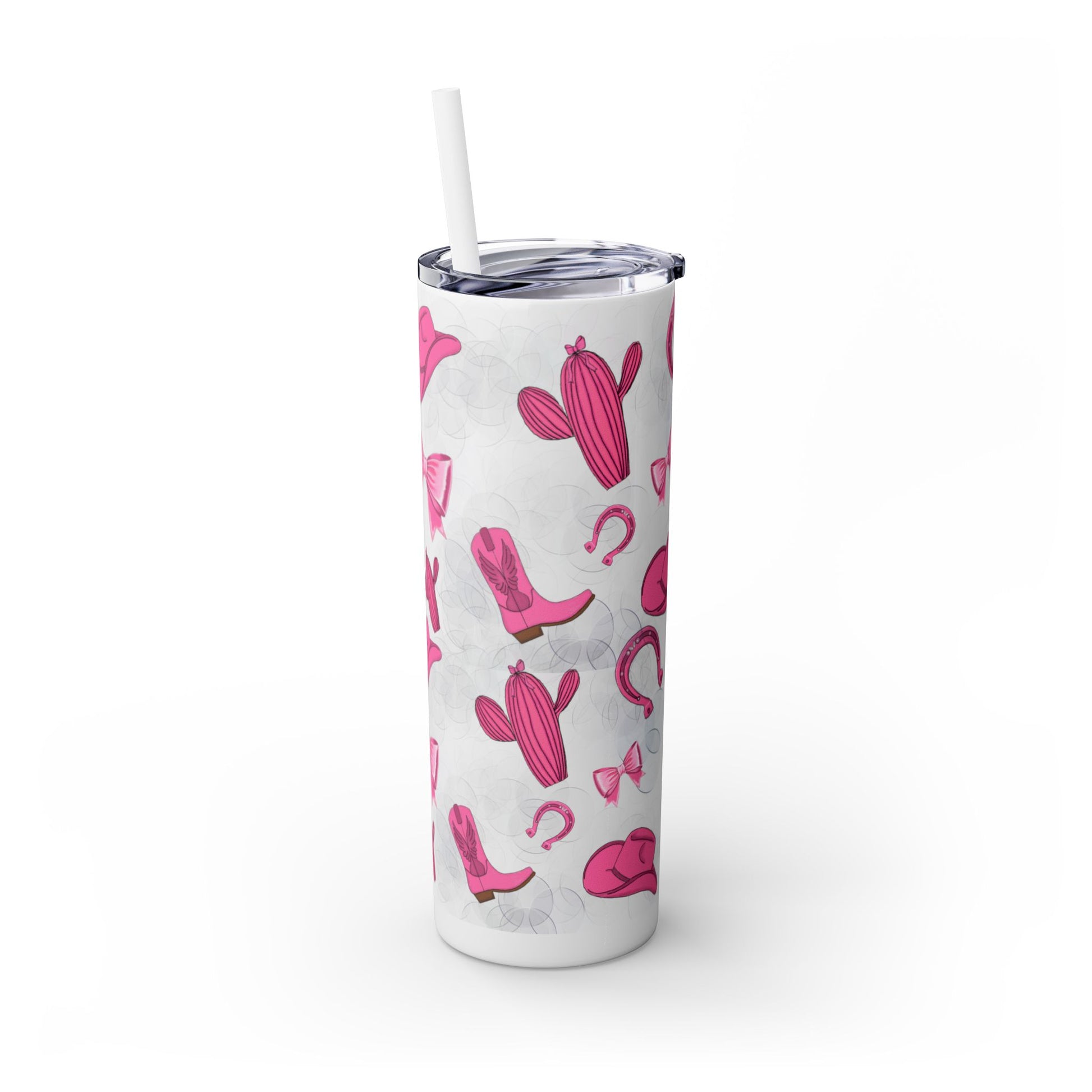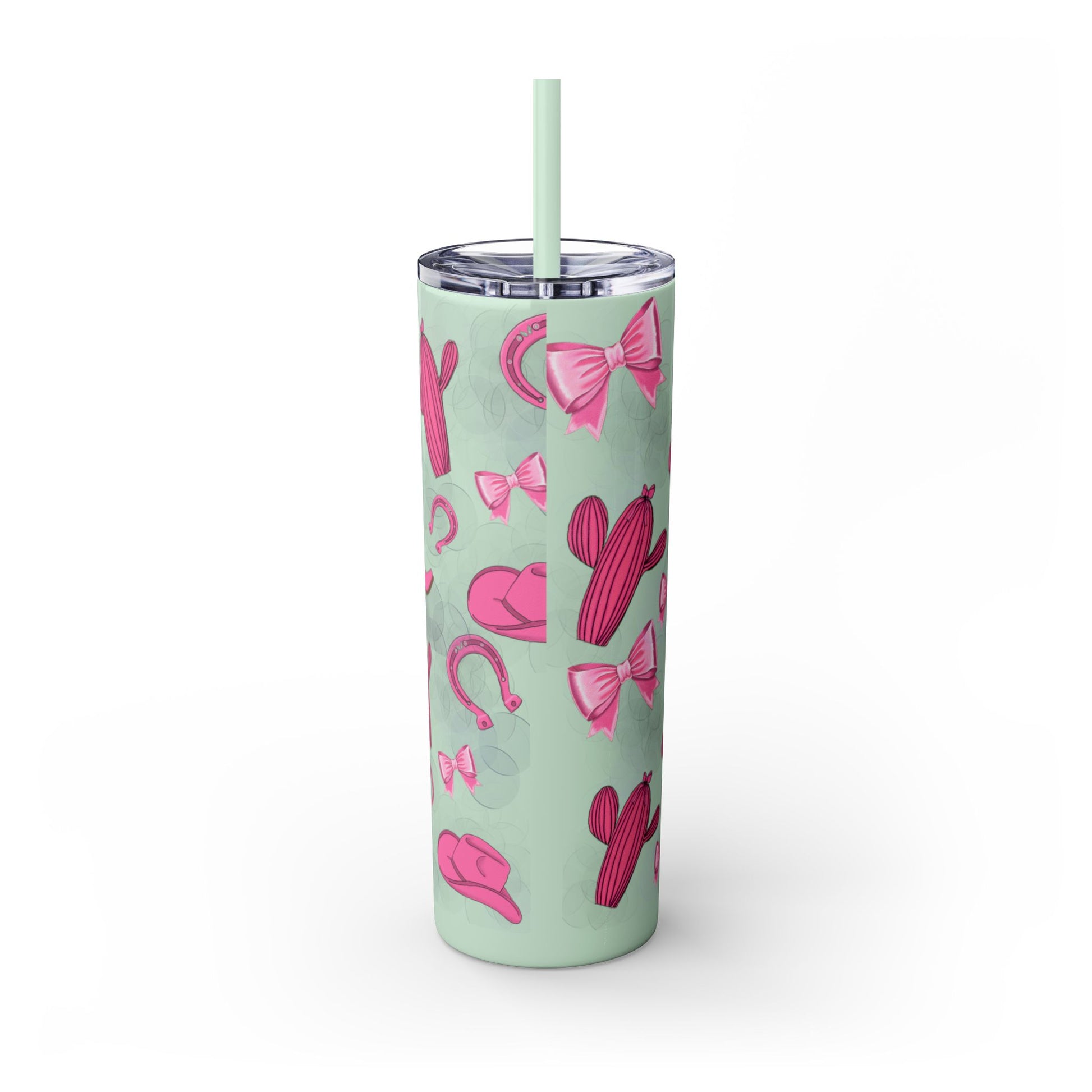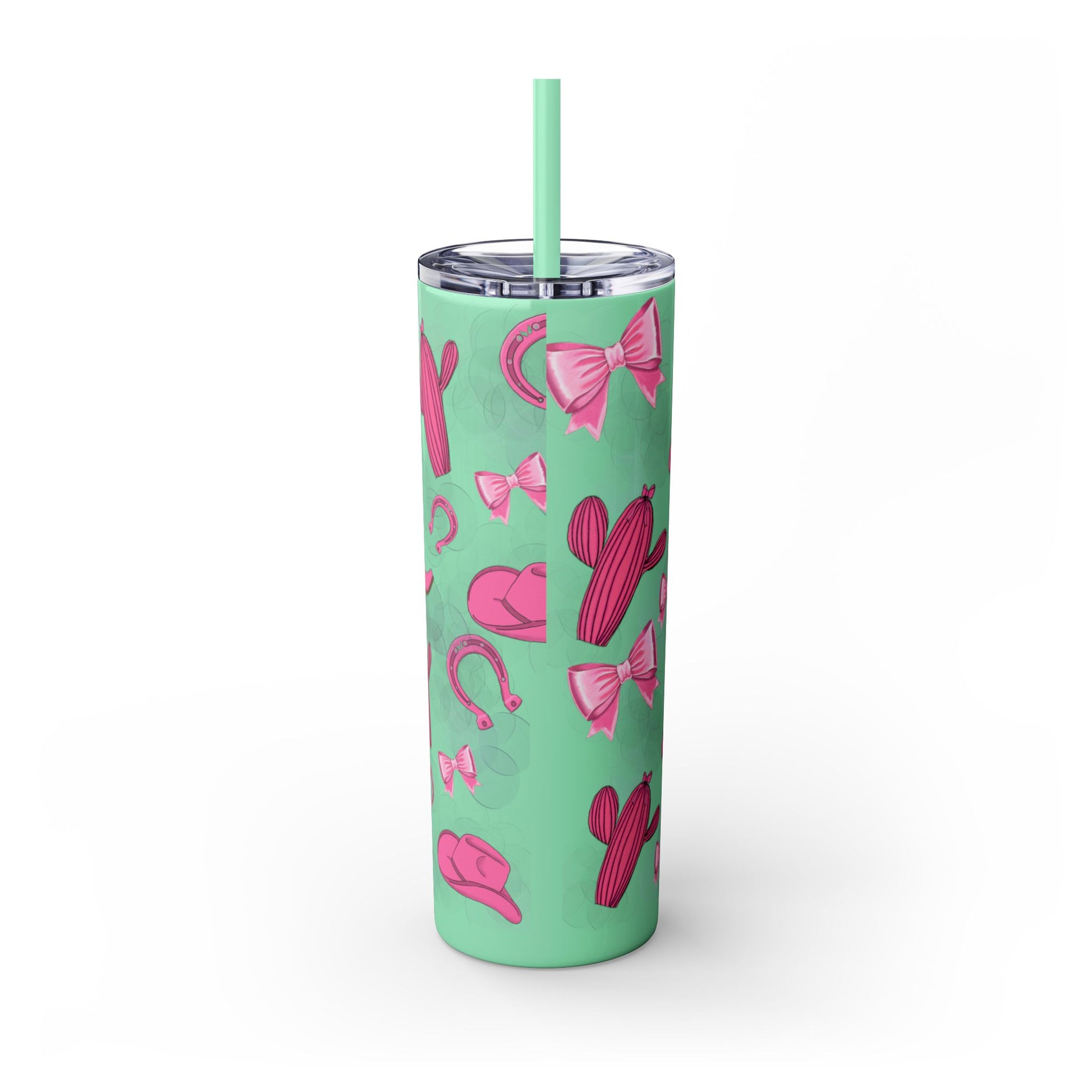 Fun Pink Cowgirl Skinny Tumbler - 20oz, Western Style Drinkware, Cactus and Bow Design, Perfect for Gifts, Summer Parties, or Rodeos