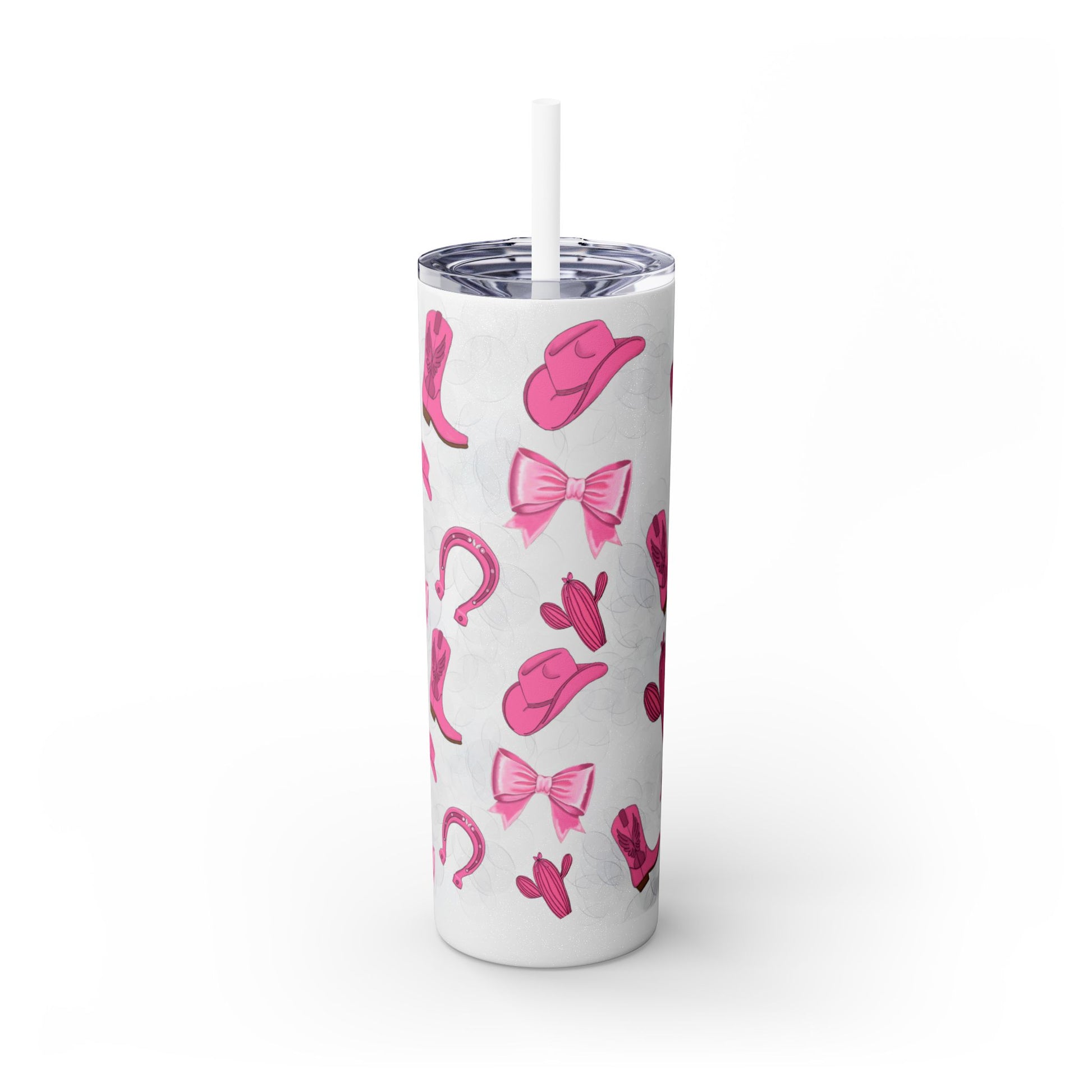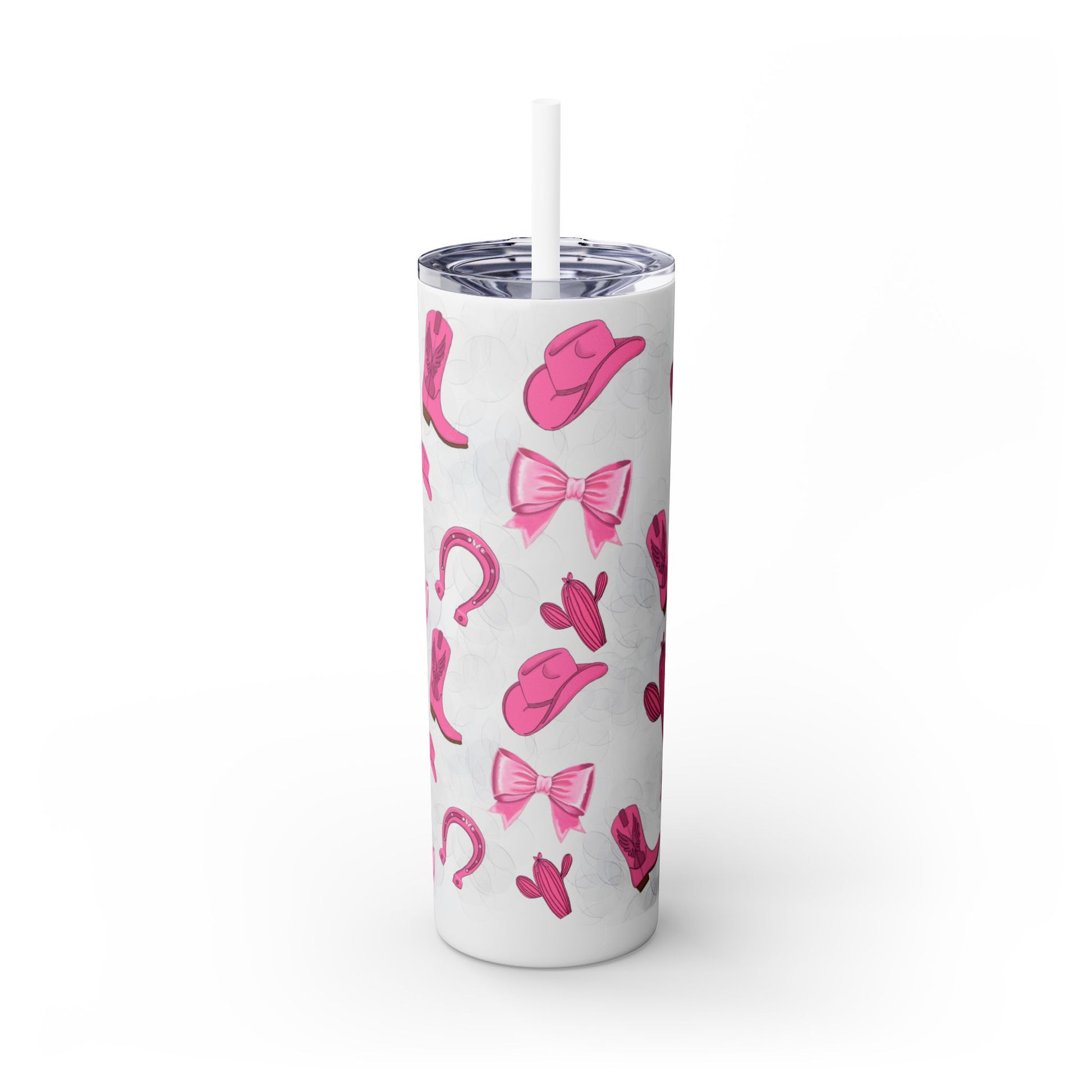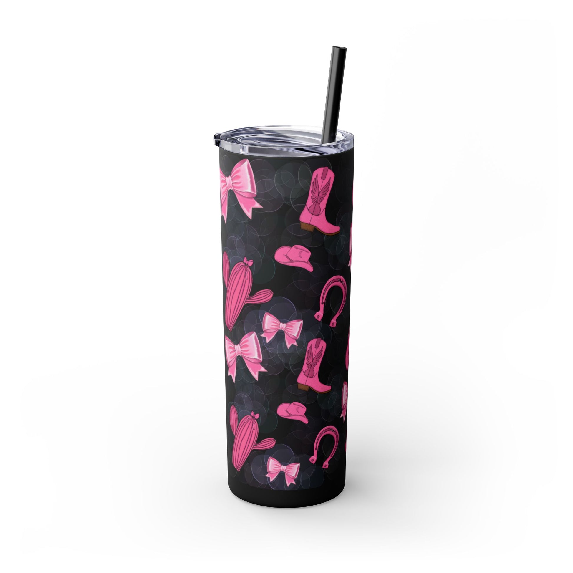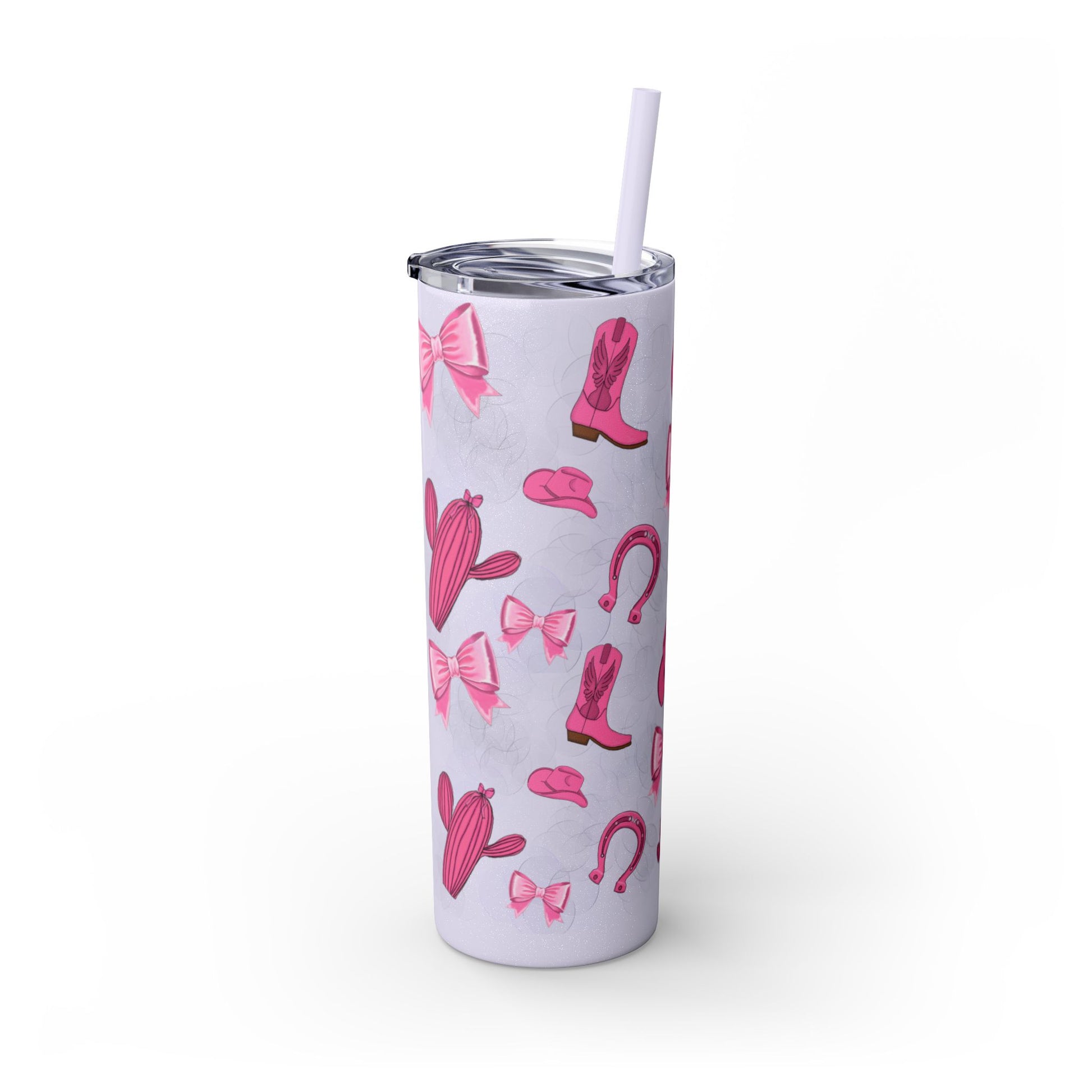 Fun Pink Cowgirl Skinny Tumbler - 20oz, Western Style Drinkware, Cactus and Bow Design, Perfect for Gifts, Summer Parties, or Rodeos