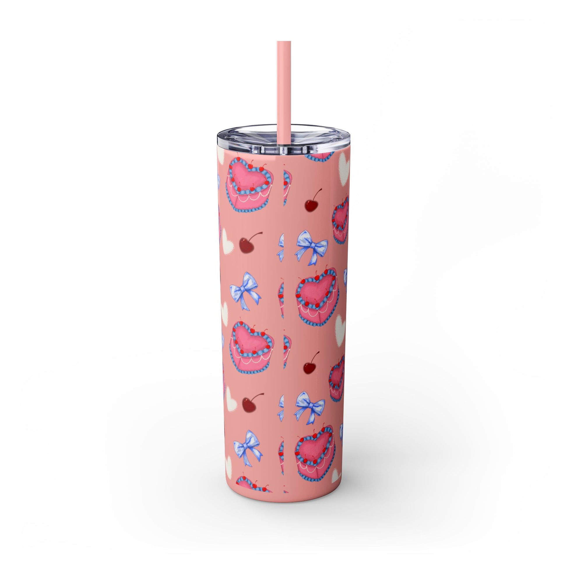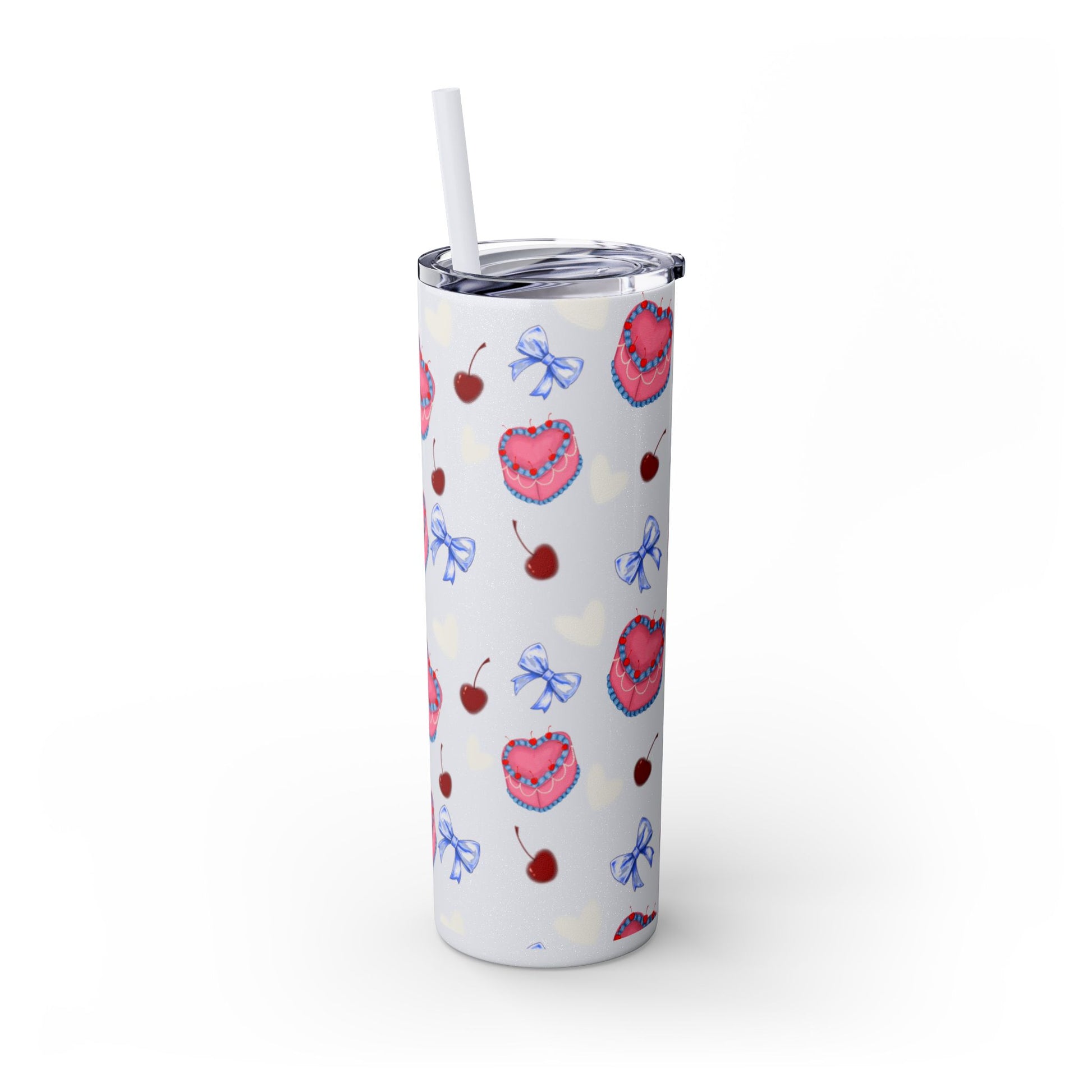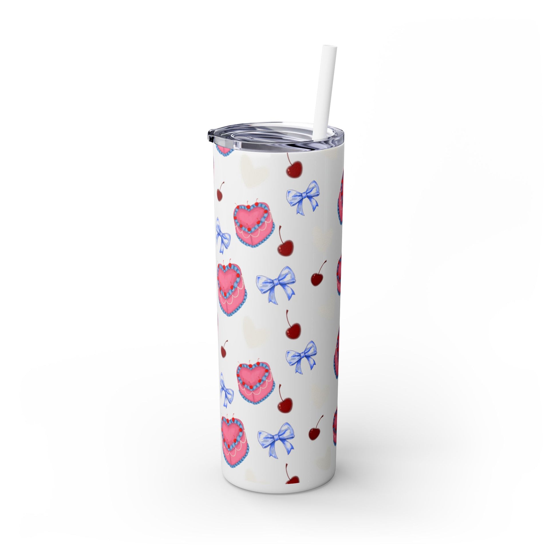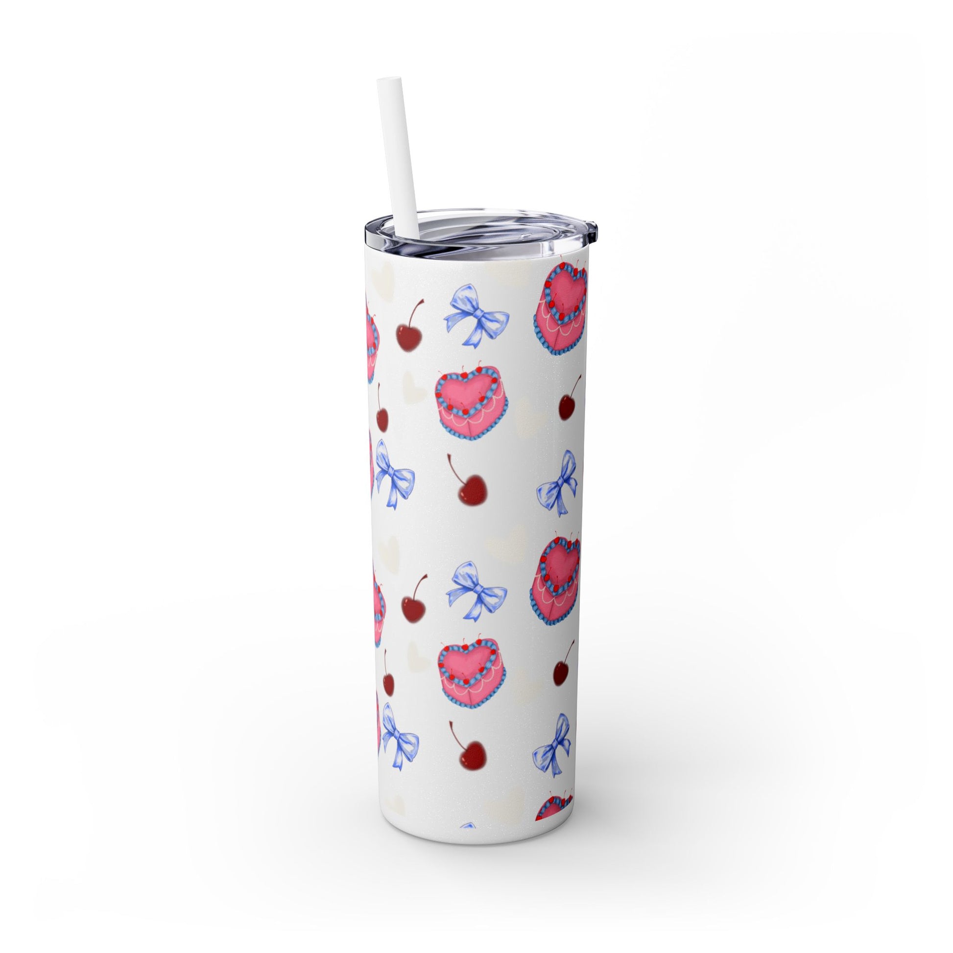 Heart Cake Skinny Tumbler, 20oz | Cute Hearts & Bows Drinkware | Gift for Her, Love Mug, Floral Tumbler, Sweetheart Tumbler
