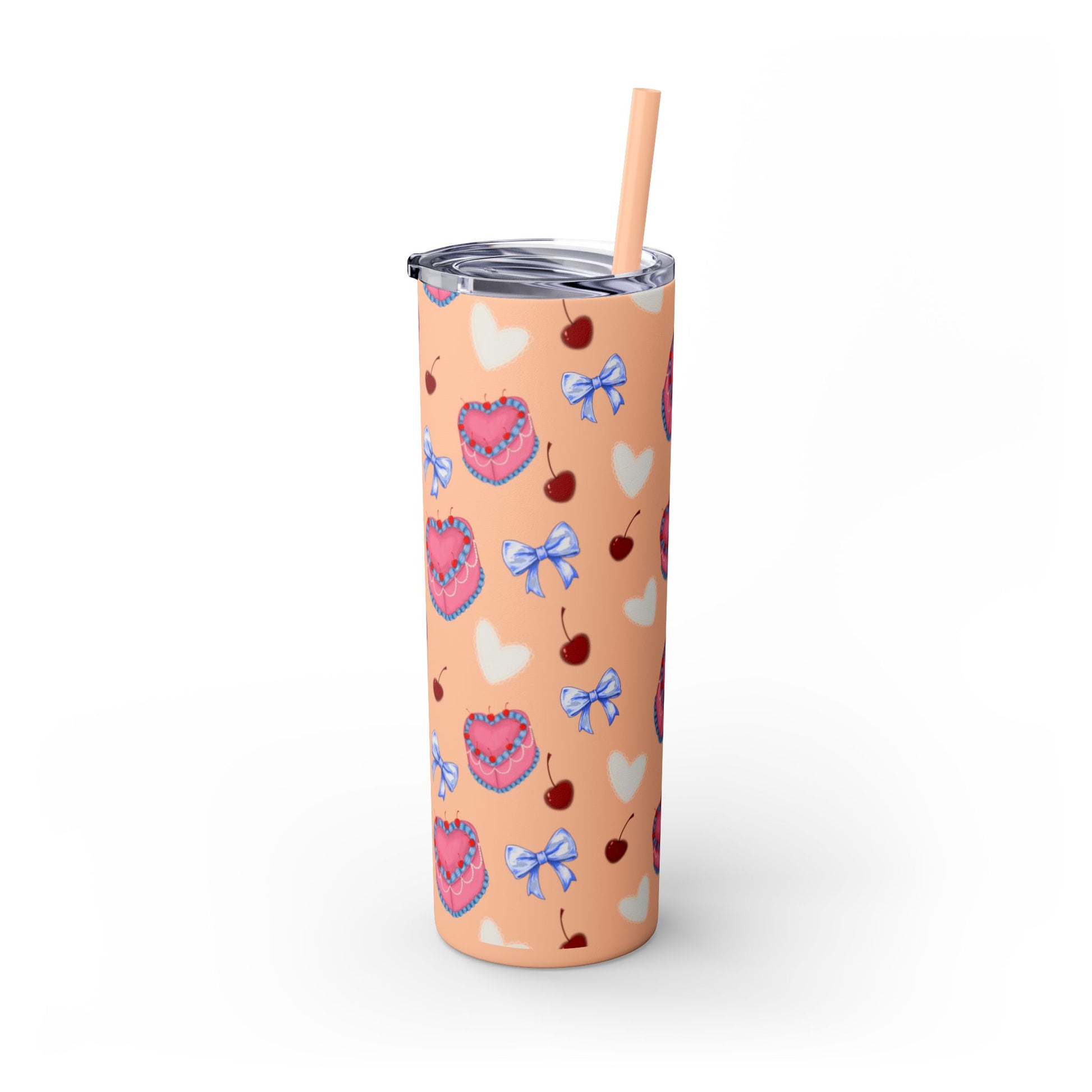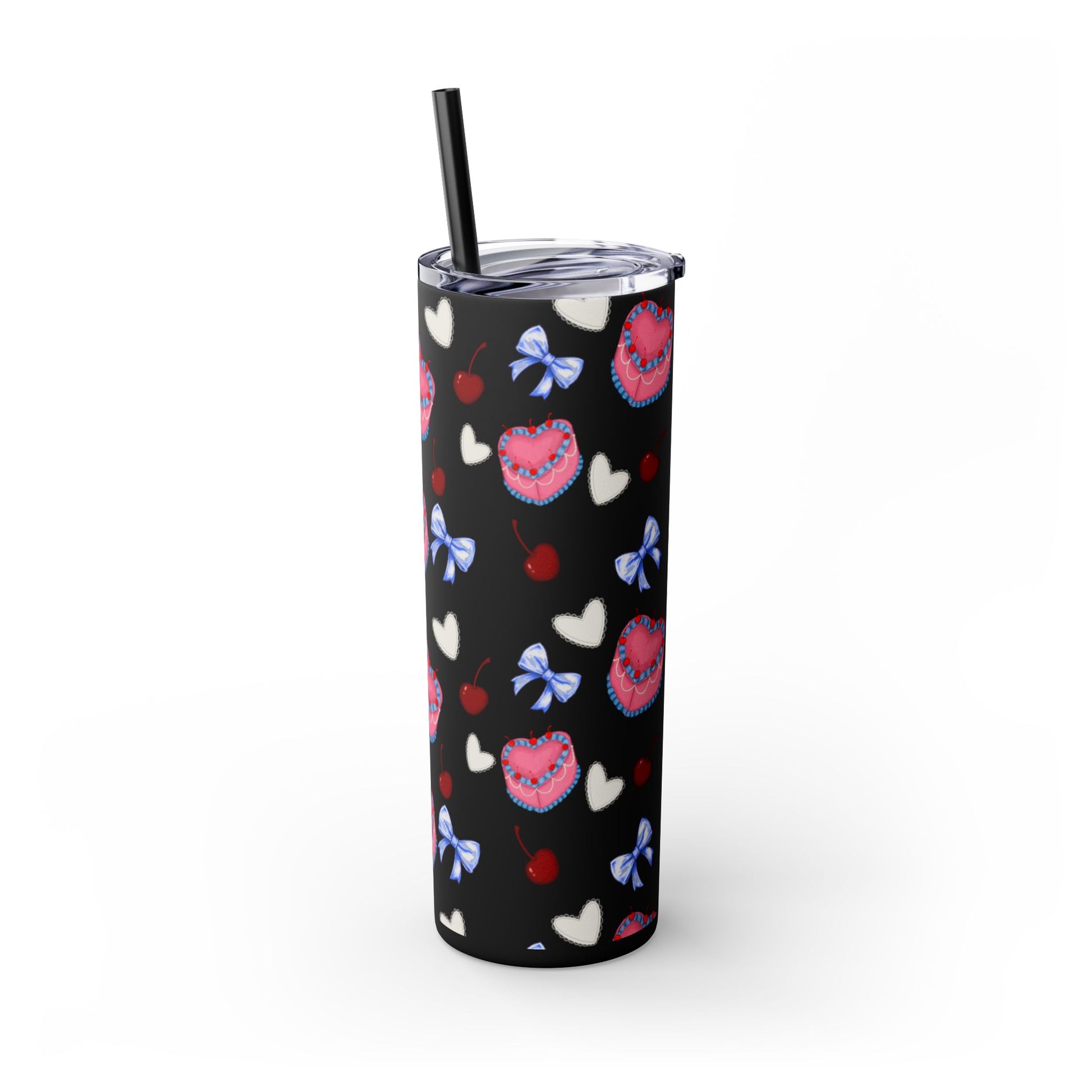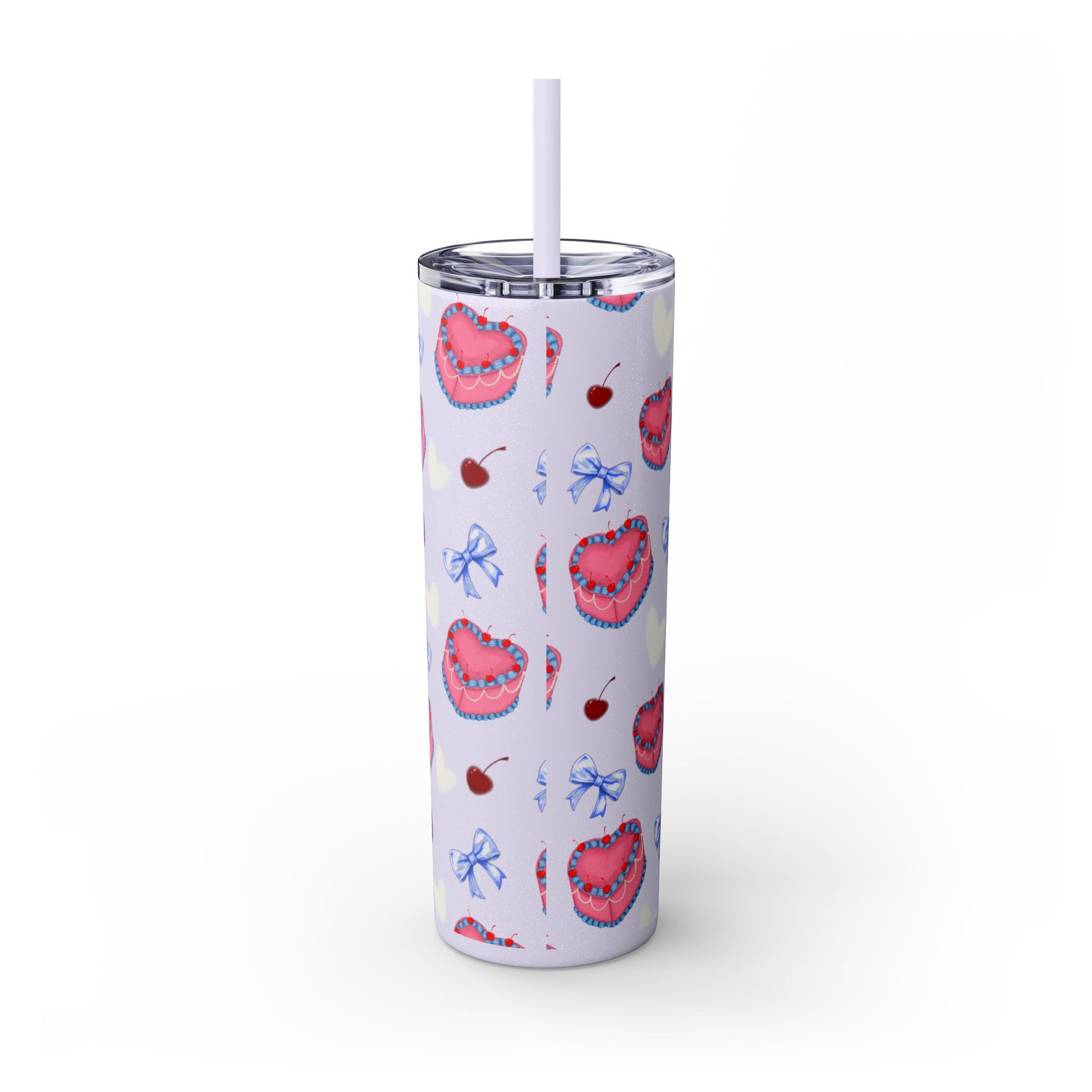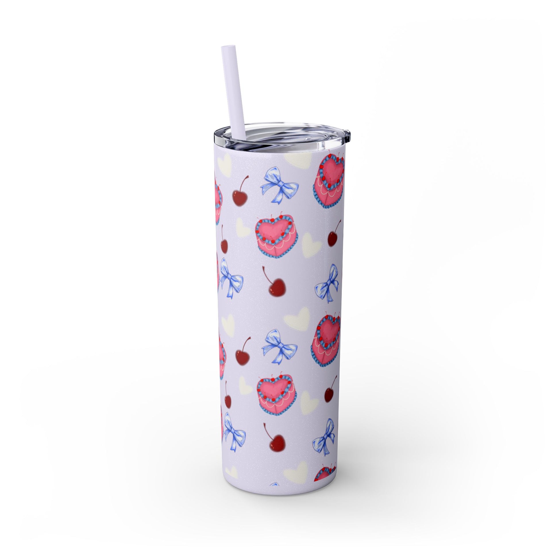 Heart Cake Skinny Tumbler, 20oz | Cute Hearts & Bows Drinkware | Gift for Her, Love Mug, Floral Tumbler, Sweetheart Tumbler
