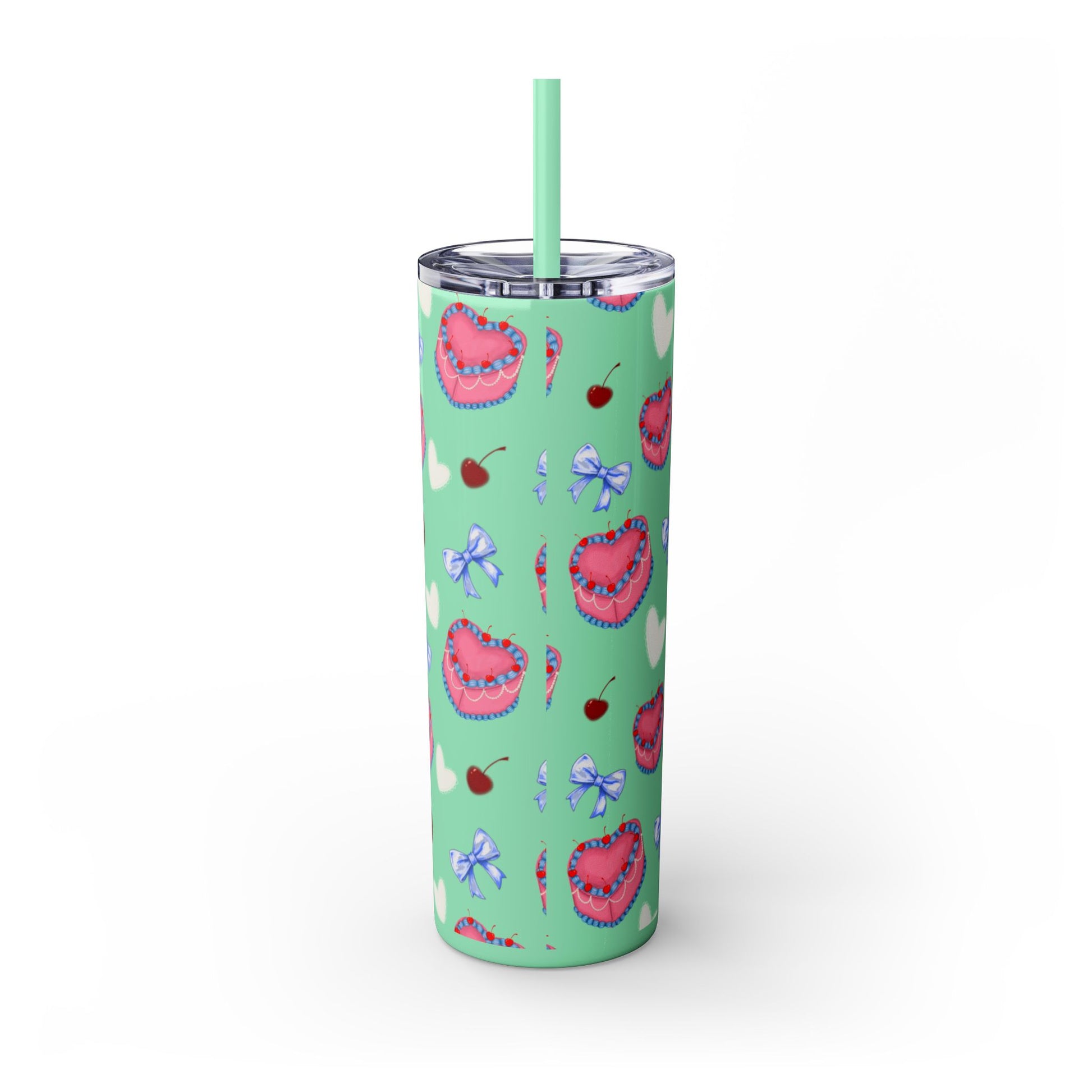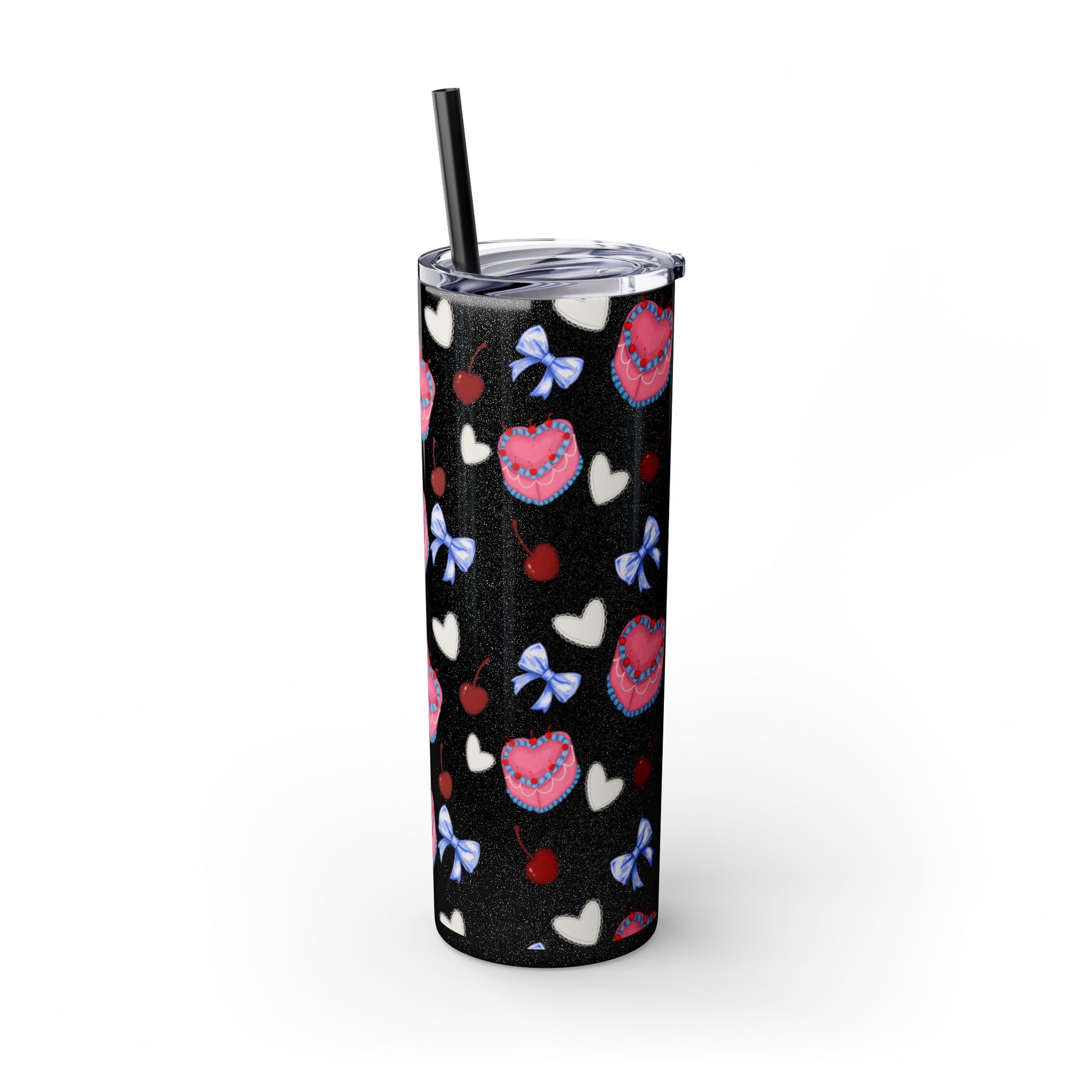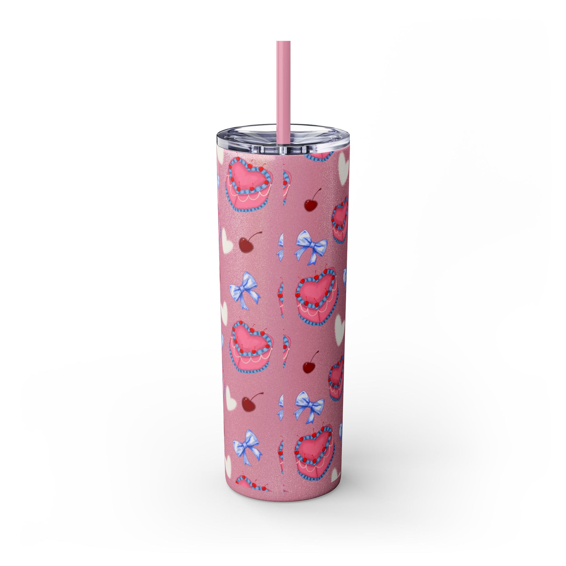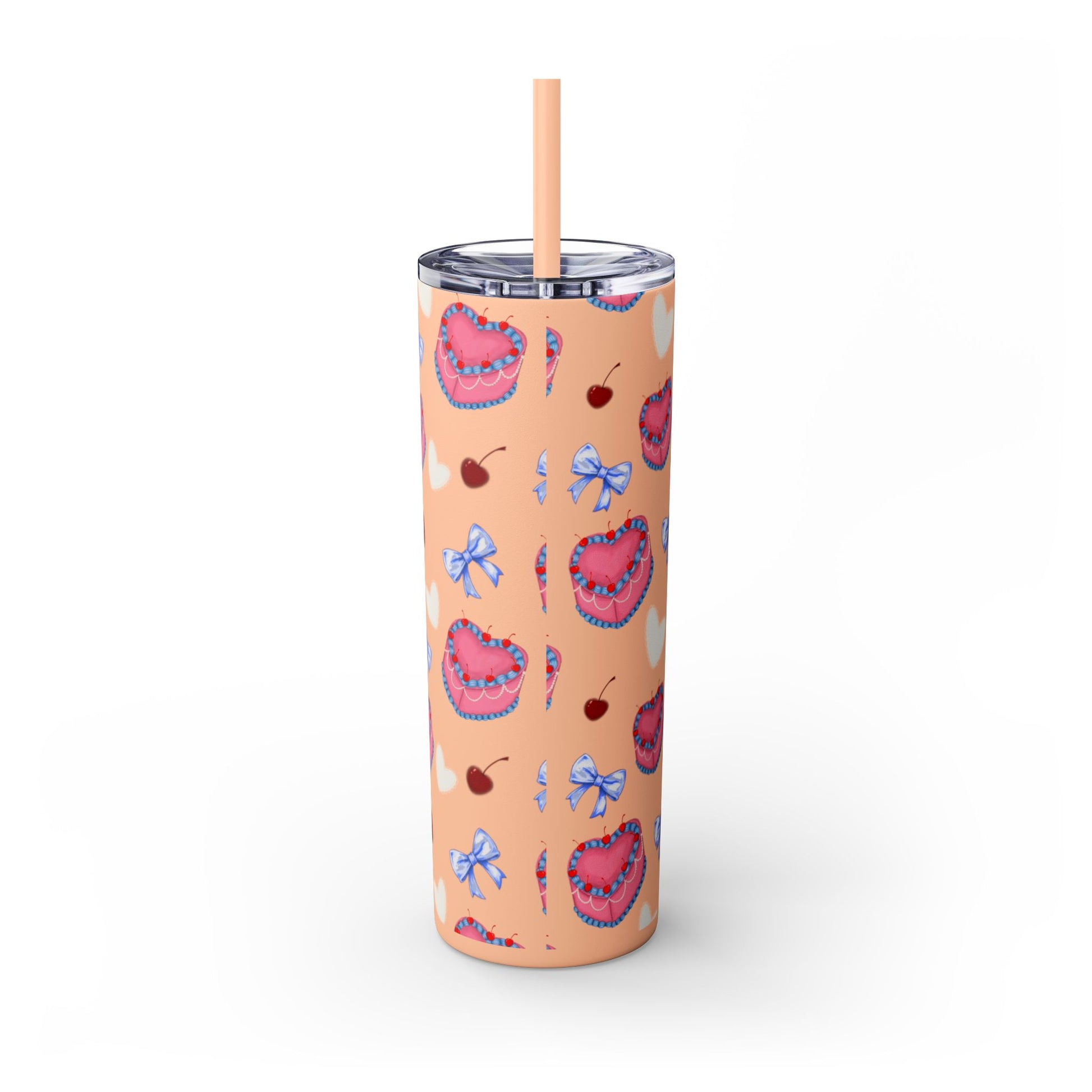 Heart Cake Skinny Tumbler, 20oz | Cute Hearts & Bows Drinkware | Gift for Her, Love Mug, Floral Tumbler, Sweetheart Tumbler
