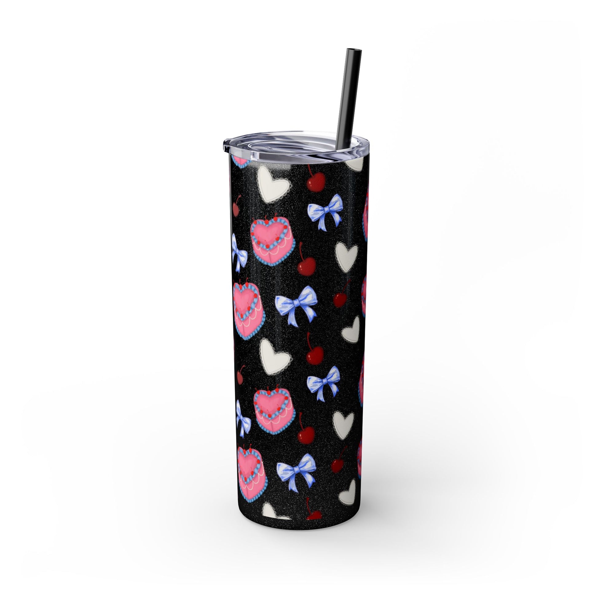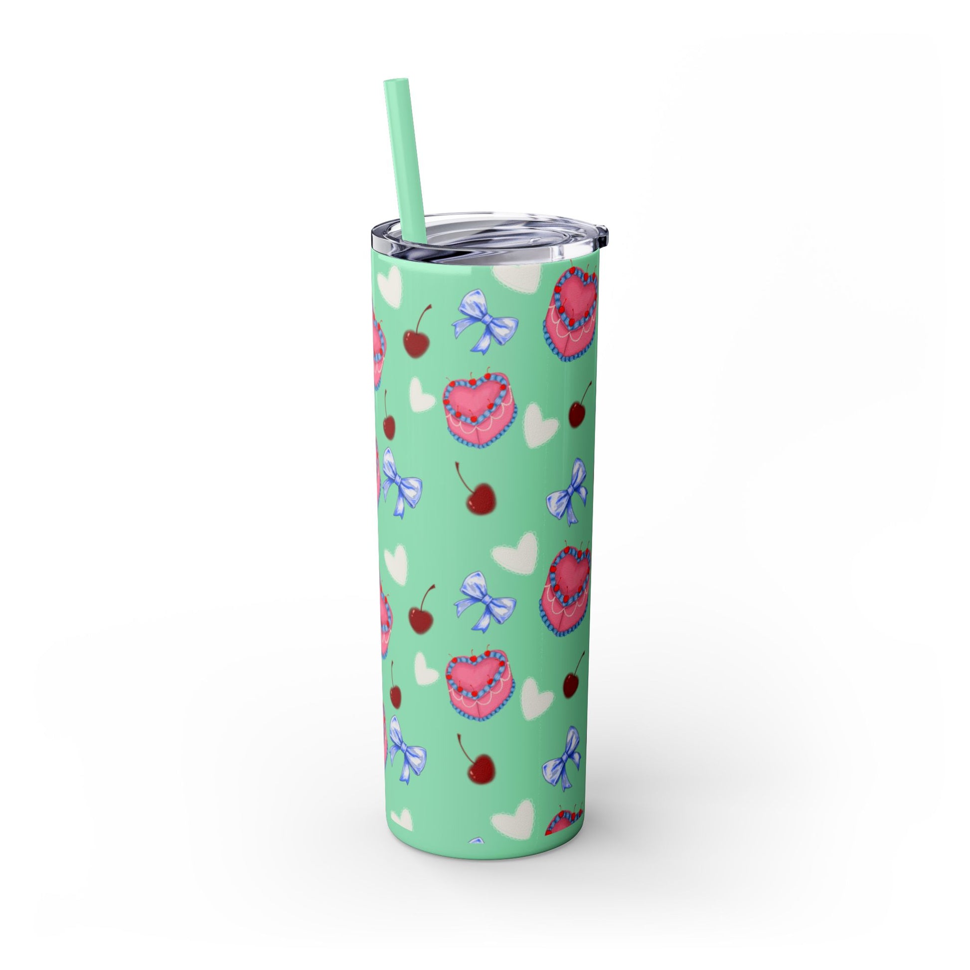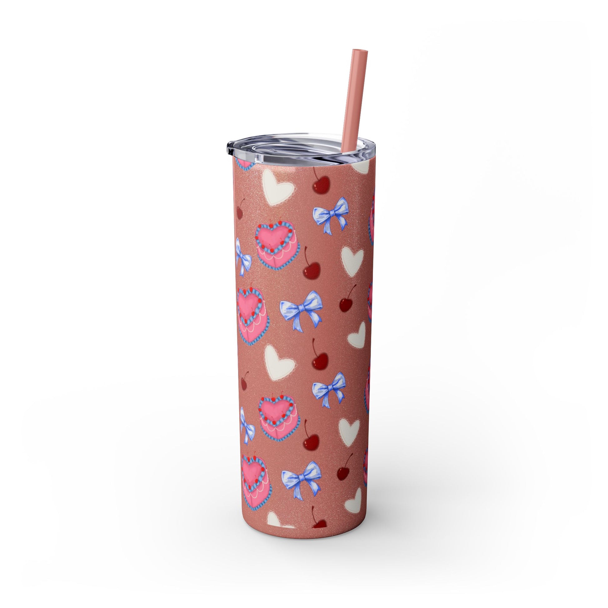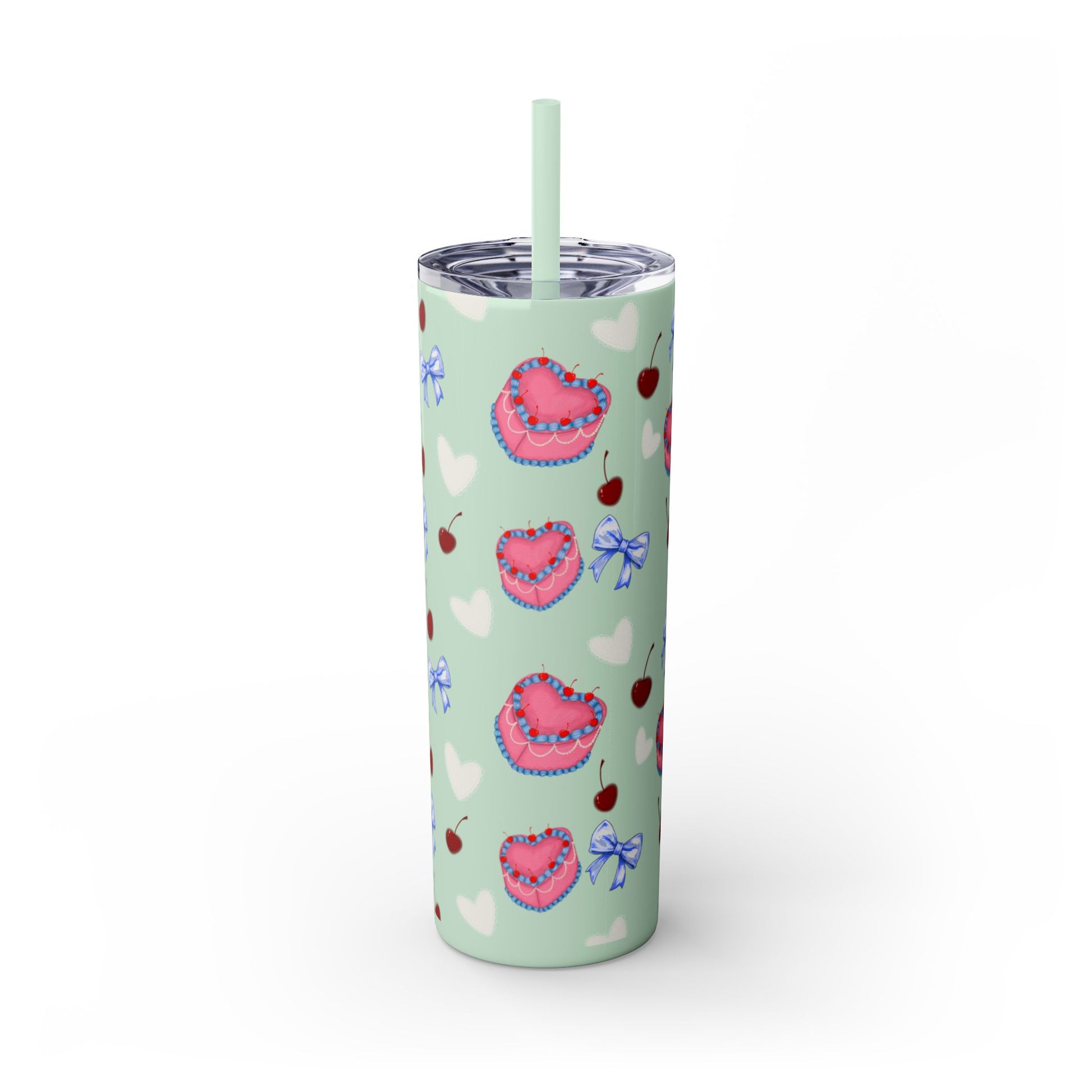 Heart Cake Skinny Tumbler, 20oz | Cute Hearts & Bows Drinkware | Gift for Her, Love Mug, Floral Tumbler, Sweetheart Tumbler