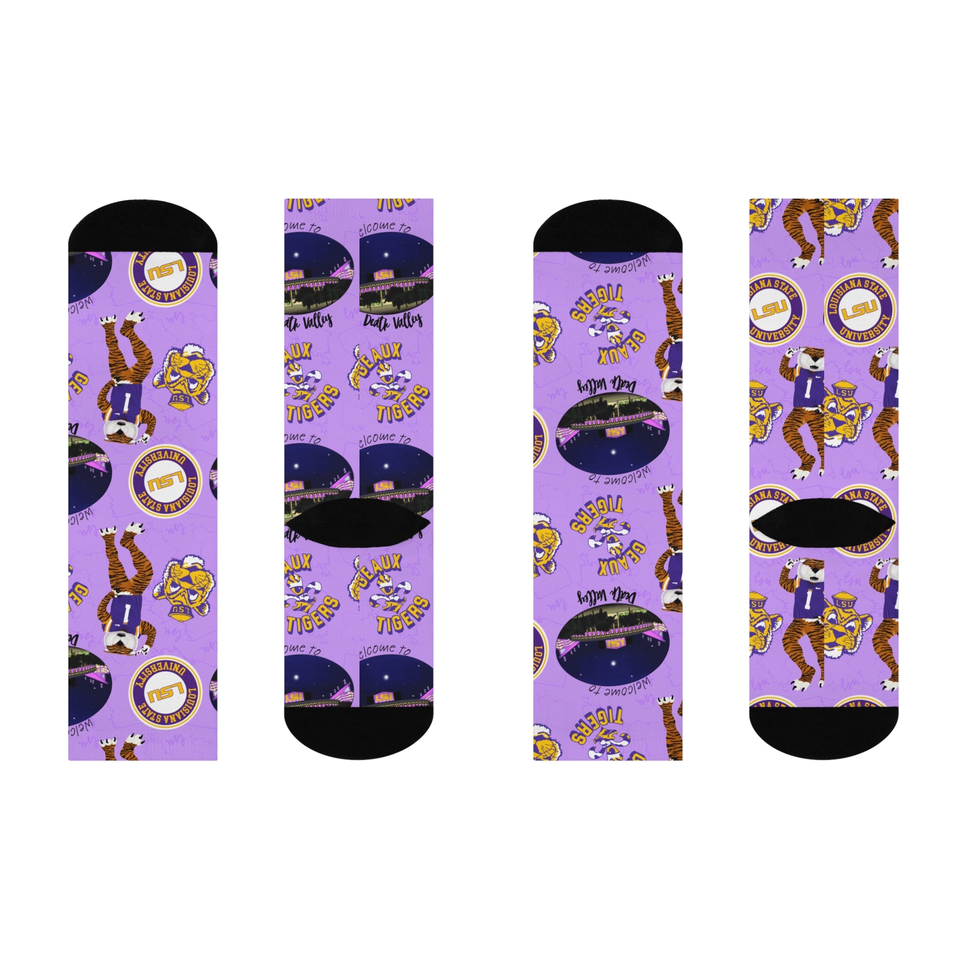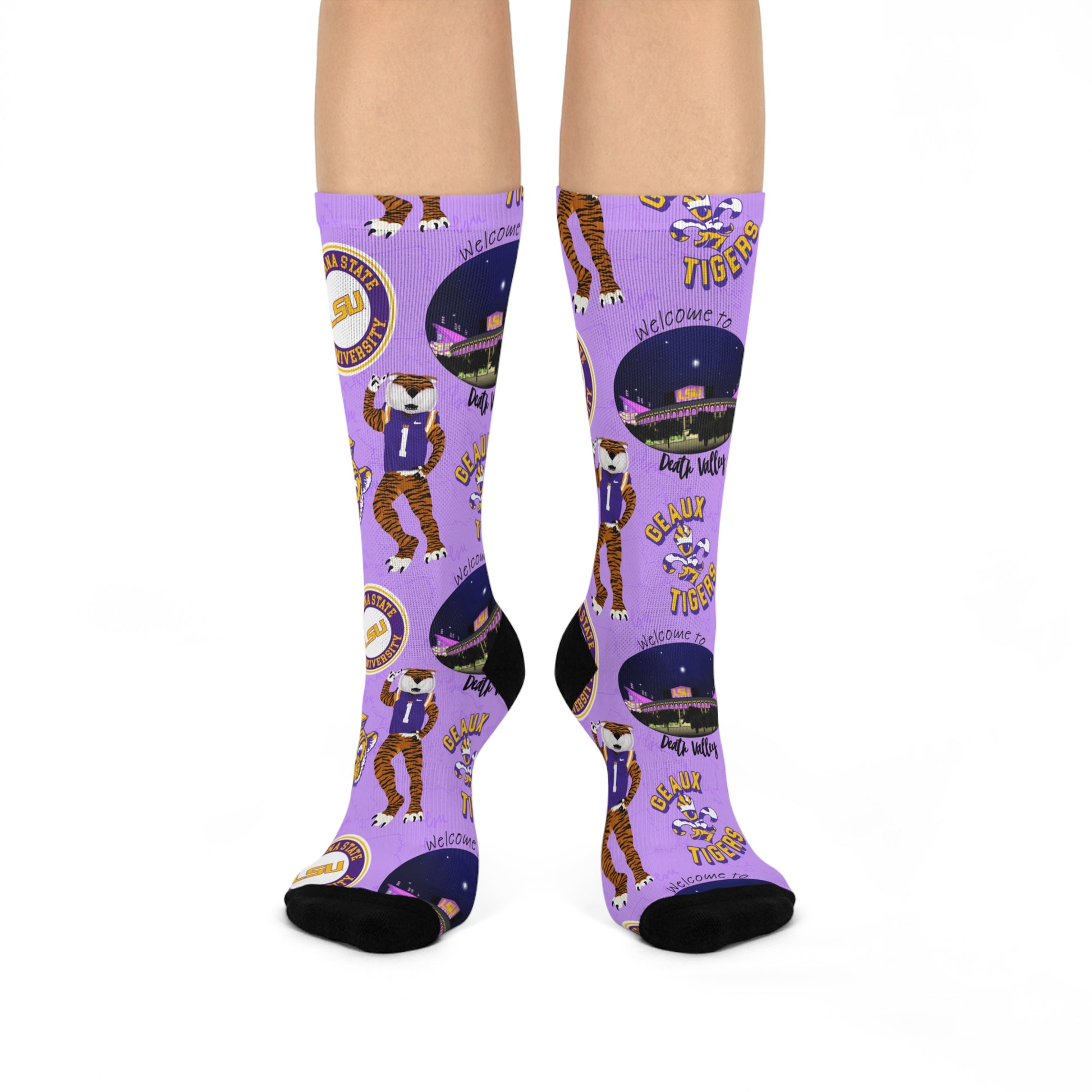 These cushioned DTG crew socks are a one-size style designed with both function and appearance in mind. With the fully cushioned heel-to-toe, these socks provide superior comfort, while the DTG print process allows for ultra-crisp, crease-free printing. Composed of 73% polyester, 18% nylon, 6% spandex, and 3% cotton, these socks are an elevated alternative to the typical sublimation sock and provide a clean, comfortable base for your all-over print designs.
