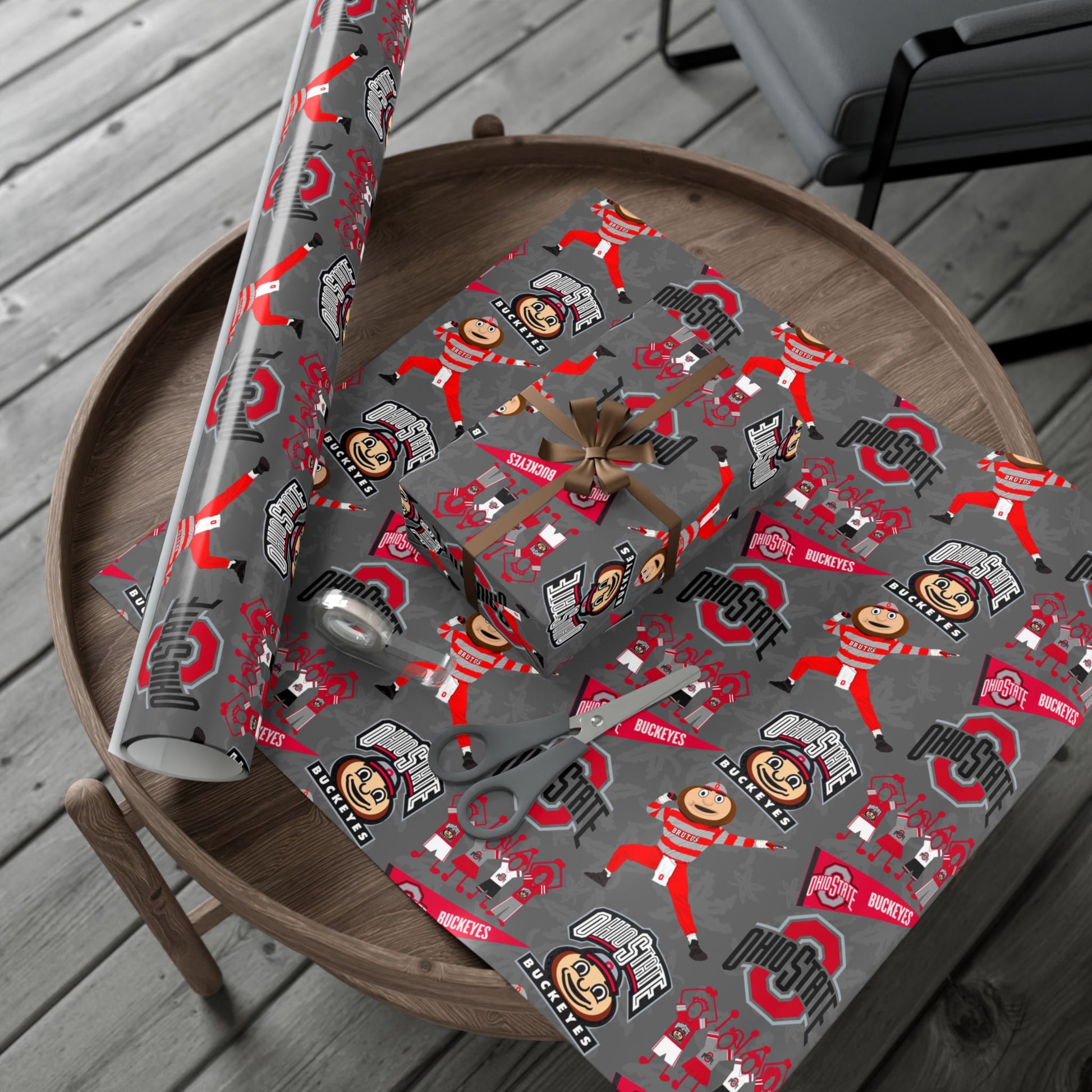 Ohio State Buckeyes Gift Wrap Paper - Brutus Mascot College Football Wrapping Paper